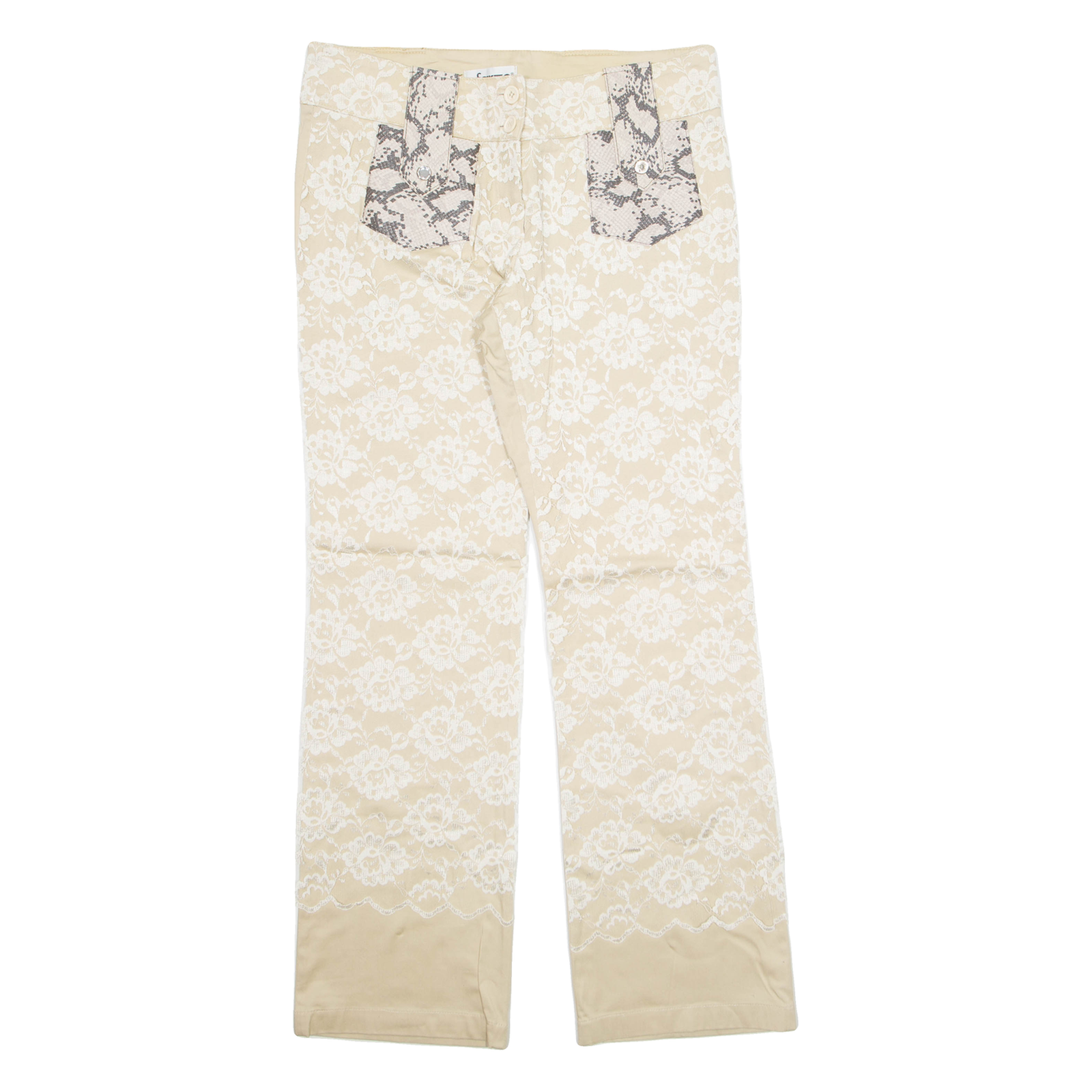 We understand that clothing sizes can vary depending on the brand, style, and age of the item. Therefore, along with providing the size stated in the label, we hand measure all our items to give you the exact measurements. Unless stated otherwise all measurements are taken with the item un-stretched.