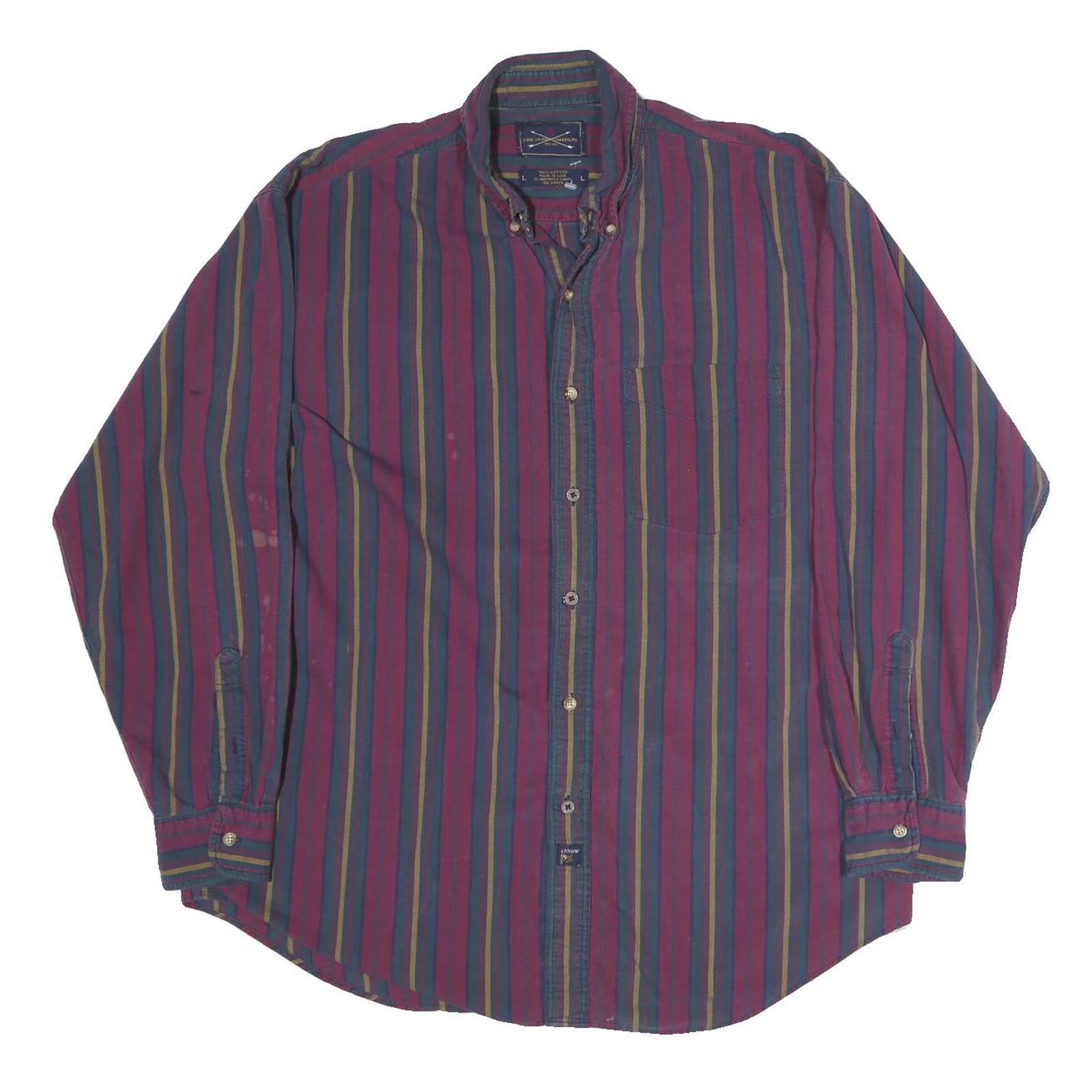 THE ARROW COMPANY Mens Purple & Blue Striped Cotton Shirt L Long Sleeve Button