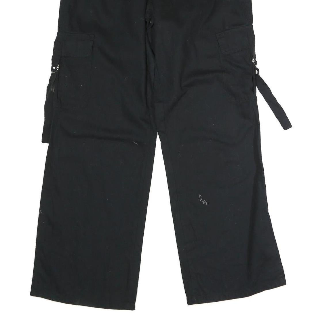 TINSEL TOWN Womens Black Cotton Blend Regular Wide-Leg Trousers W30 L32 Casual