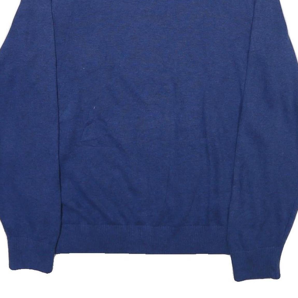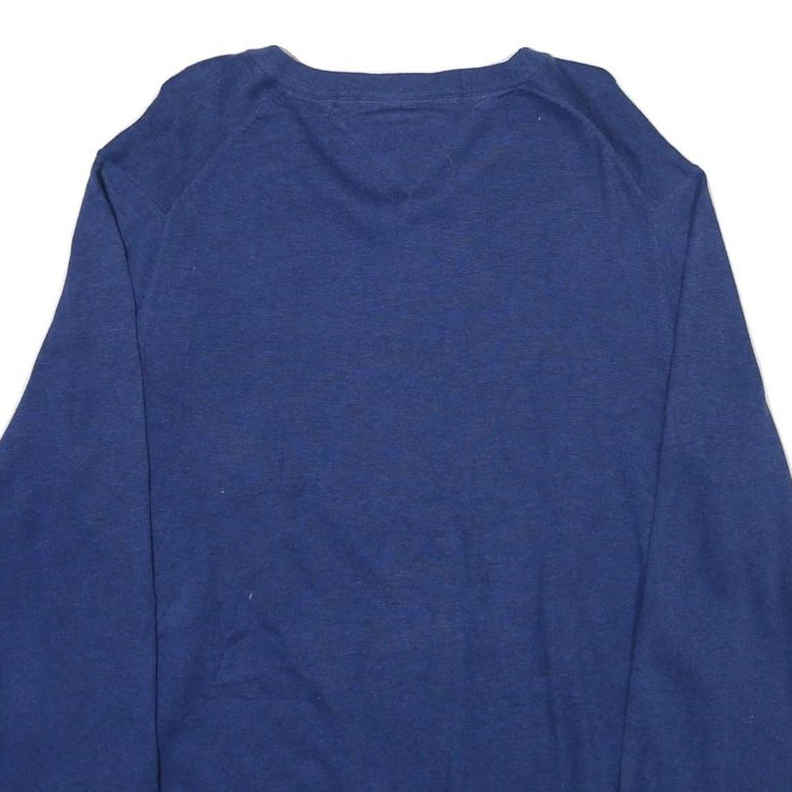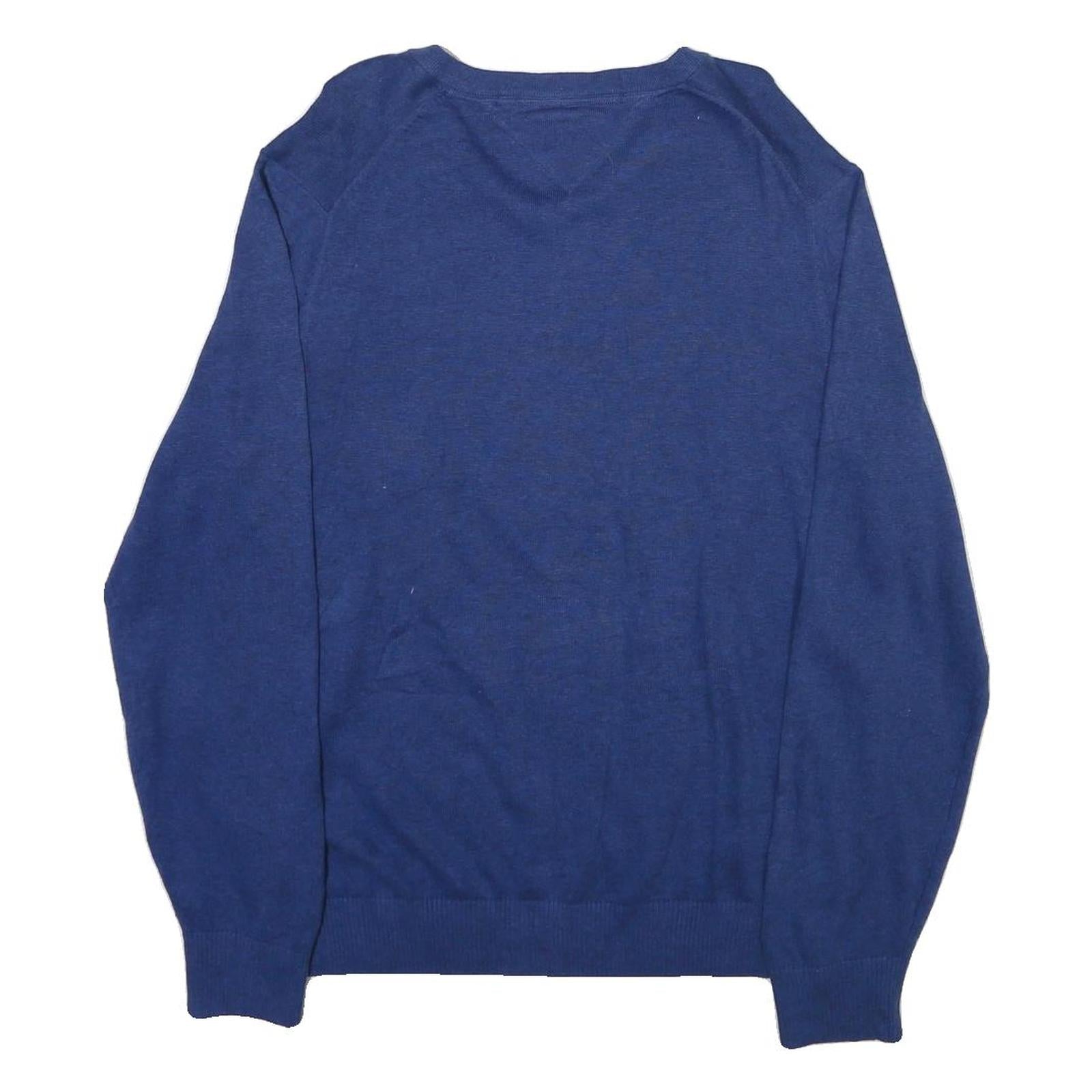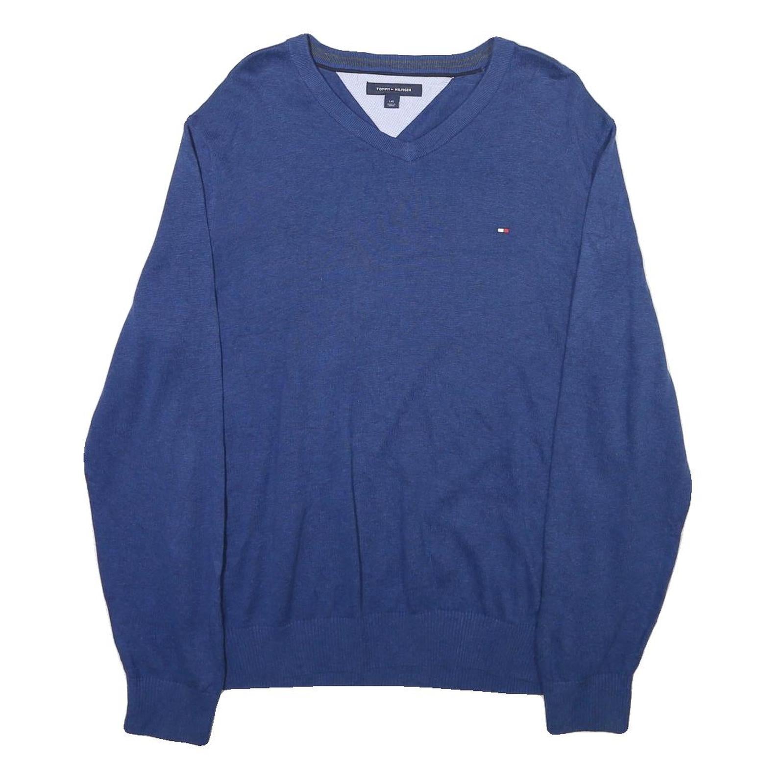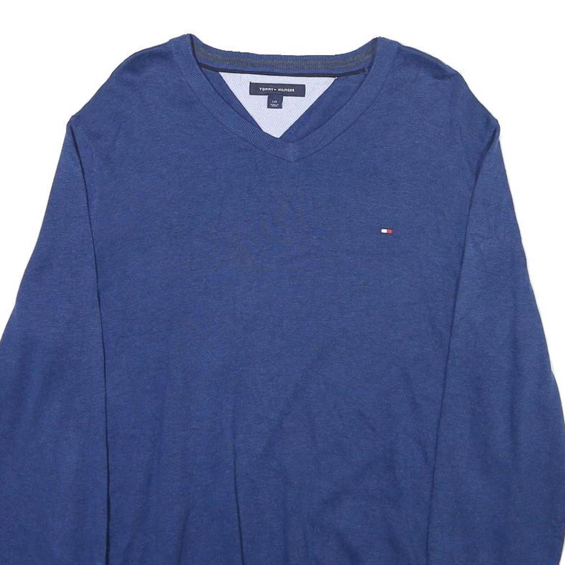 TOMMY HILFIGER Mens Blue Plain V-Neck Basic Knit L Cotton Blend Jumper