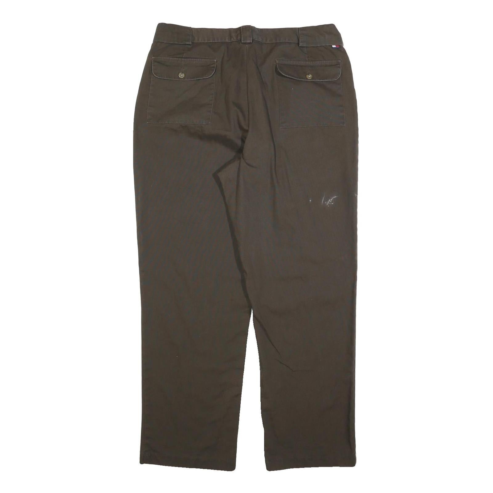 TOMMY HILFIGER Mens Cotton Blend Brown Regular Straight Trousers W38 L32 Casual