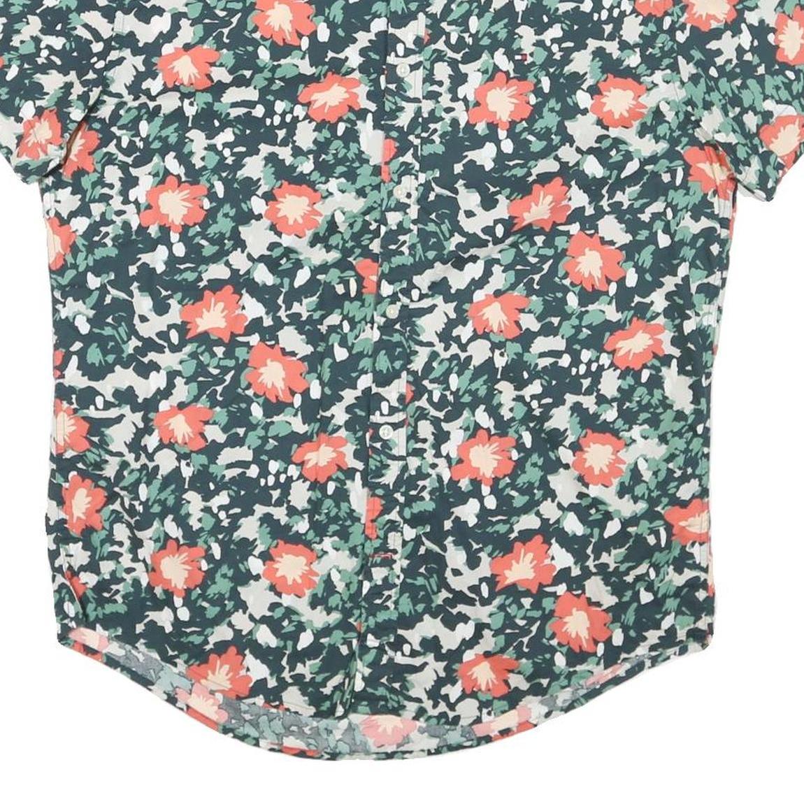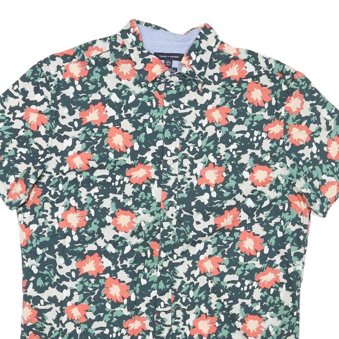TOMMY HILFIGER Mens Green & Coral Floral Cotton Blend Shirt XL Casual Summer