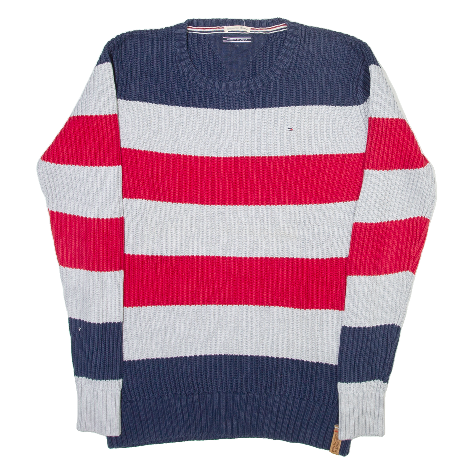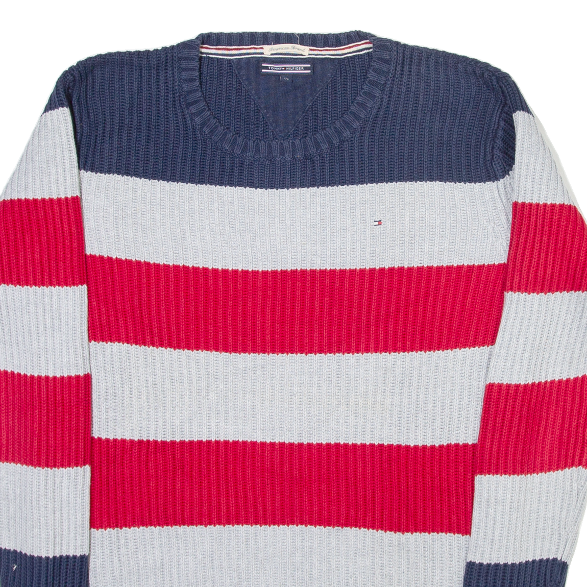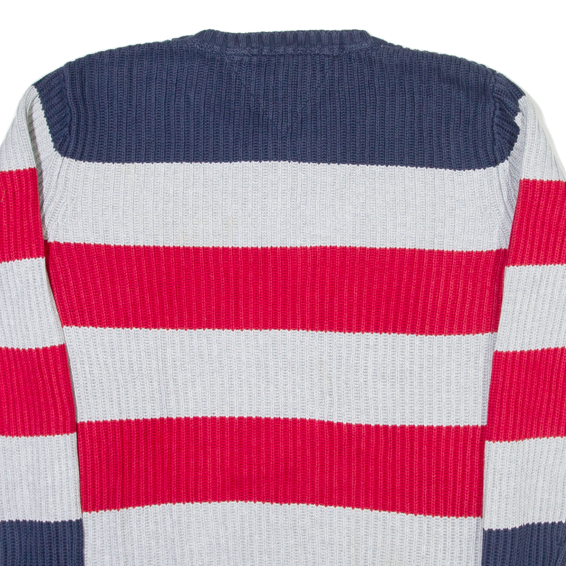 TOMMY HILFIGER Mens Heavy Knit Jumper Grey Striped Tight Knit S