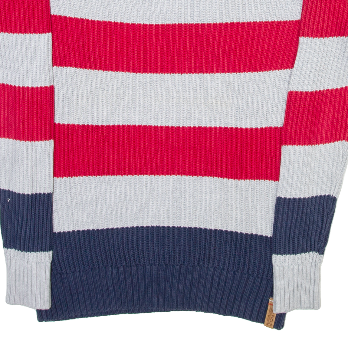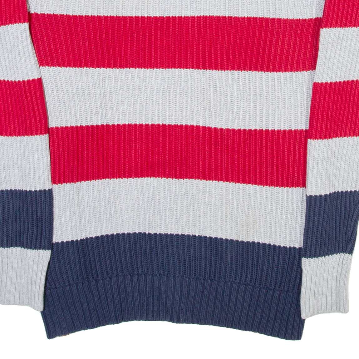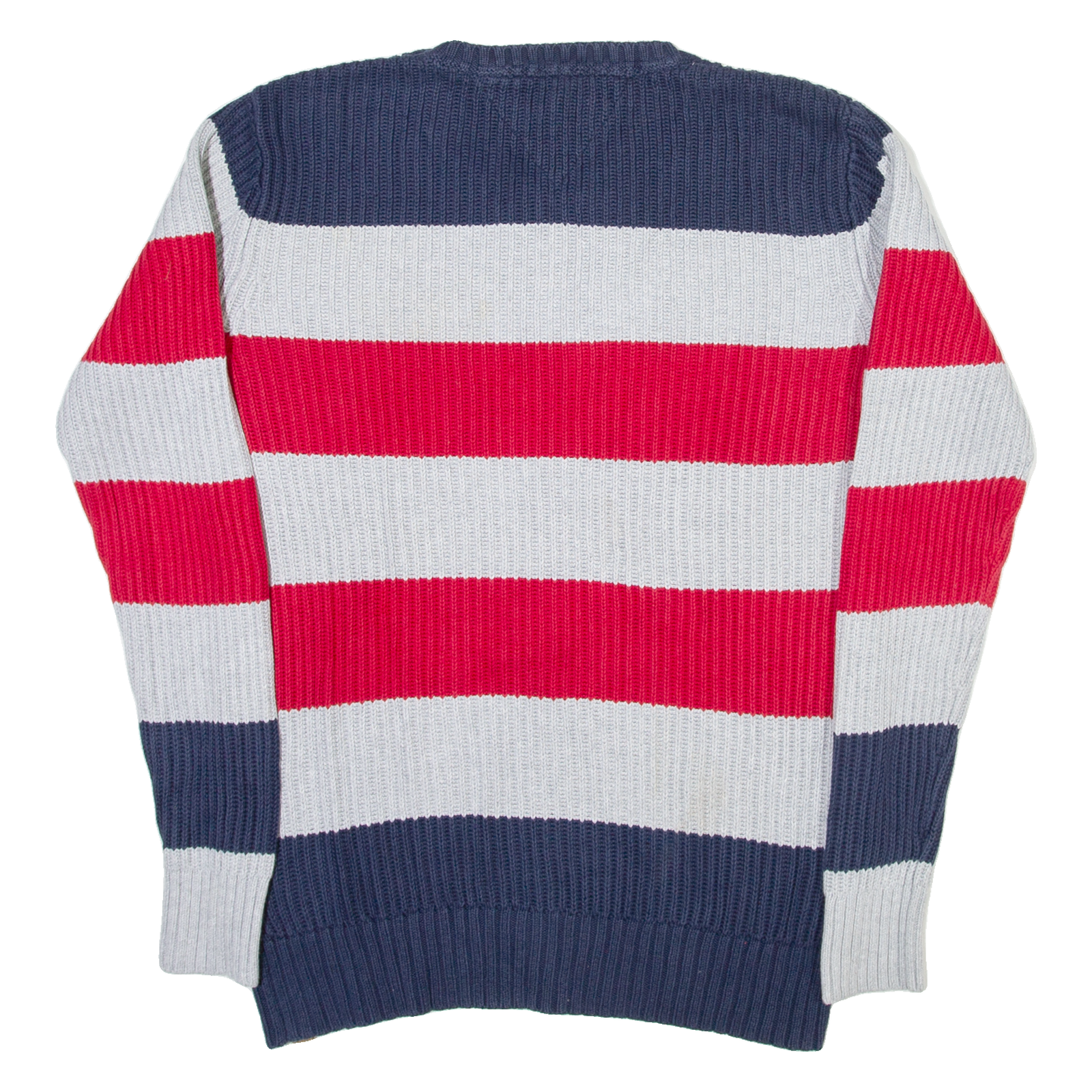TOMMY HILFIGER Mens Heavy Knit Jumper Grey Striped Tight Knit S