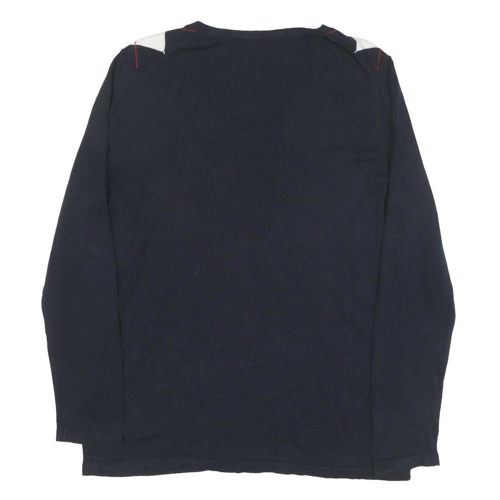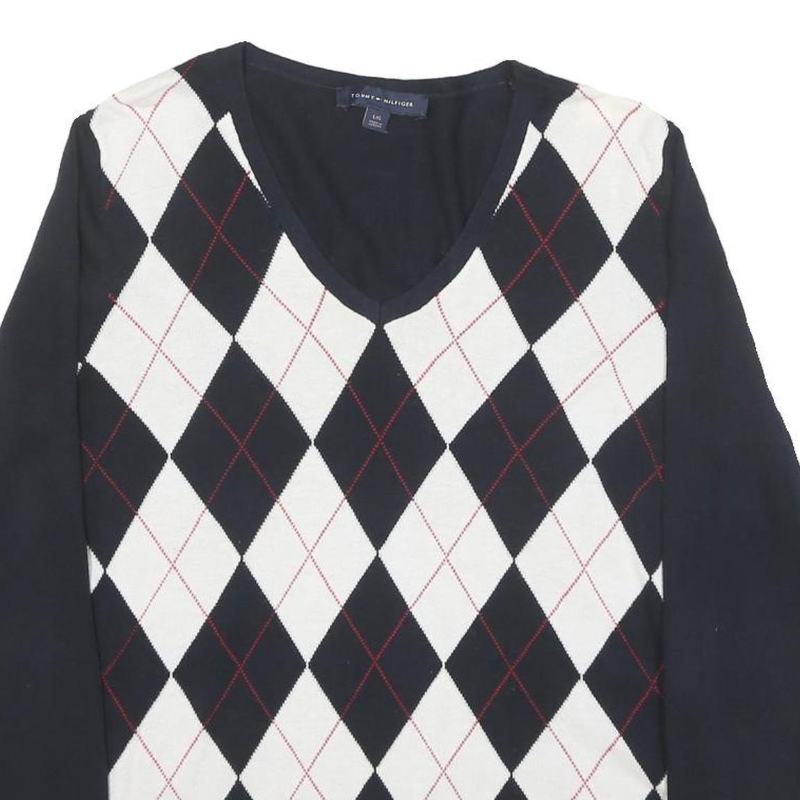 TOMMY HILFIGER Mens Navy & White Argyle Pattern V-Neck Cotton Blend Jumper L