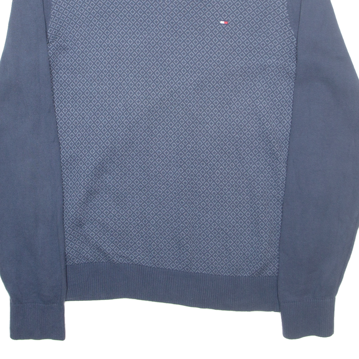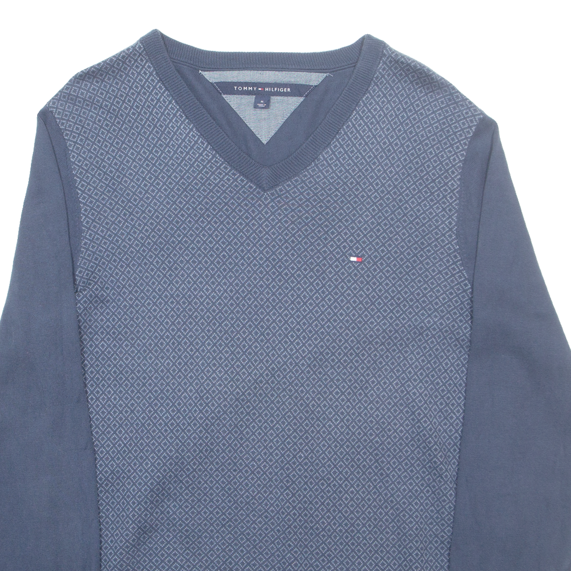 TOMMY HILFIGER Mens Patterned Jumper Blue Diamond V-Neck Tight Knit M