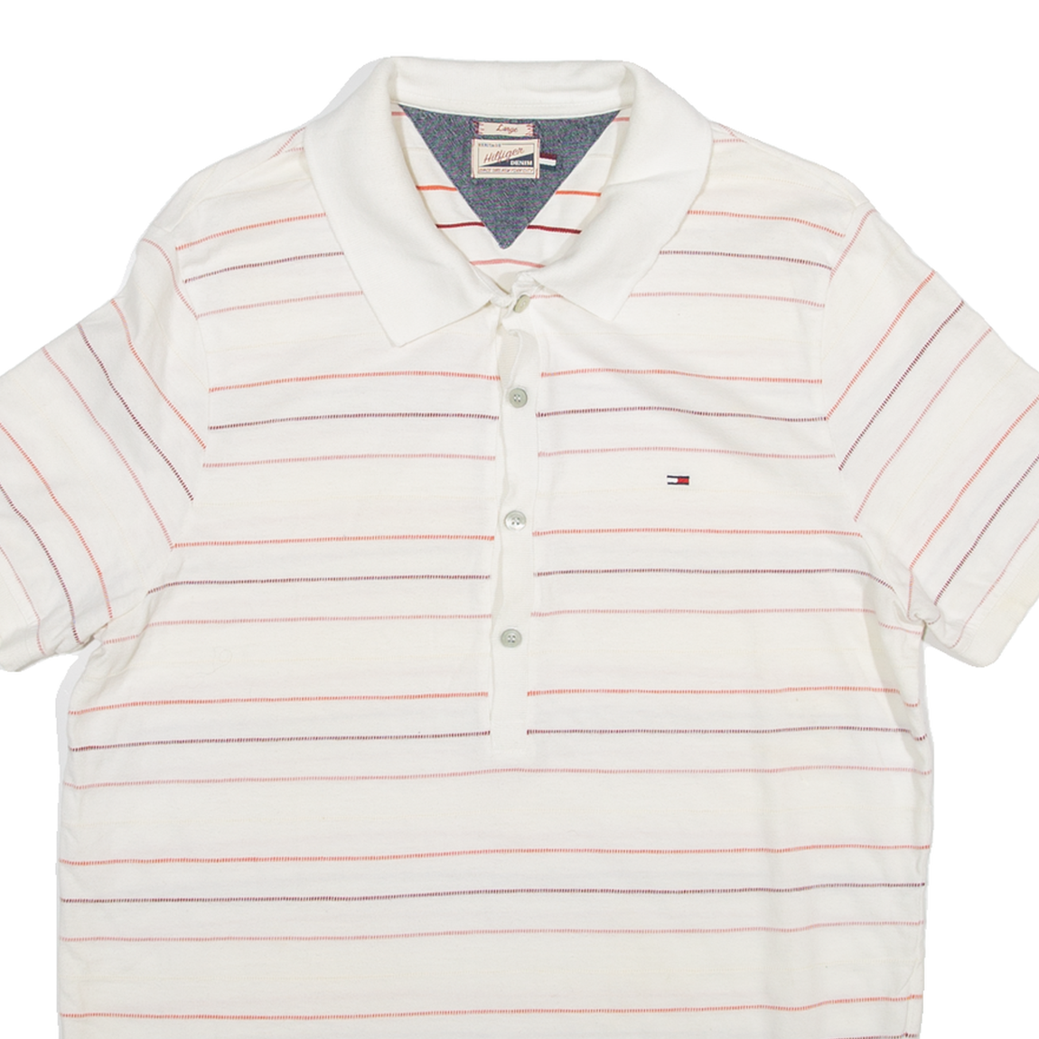 TOMMY HILFIGER Mens Polo Shirt White Striped L