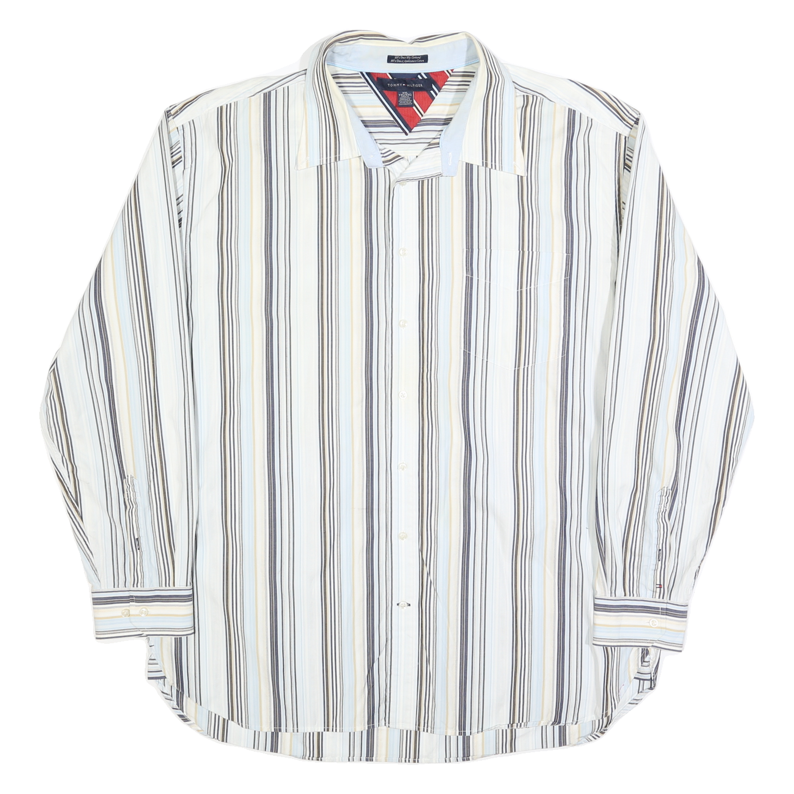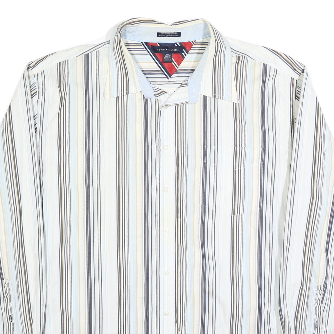 TOMMY HILFIGER Mens White & Beige Striped Shirt 2XL Cotton Blend Casual Long