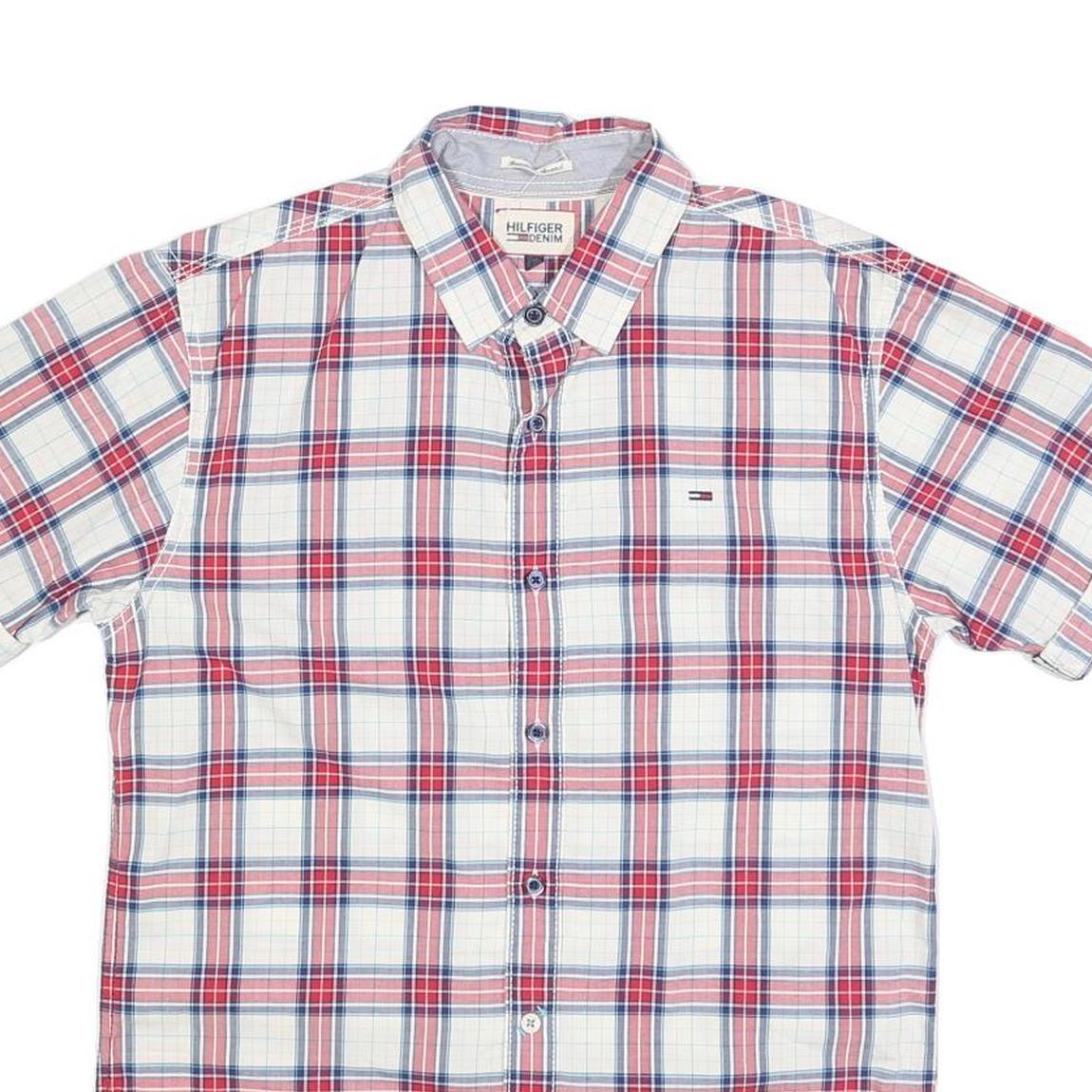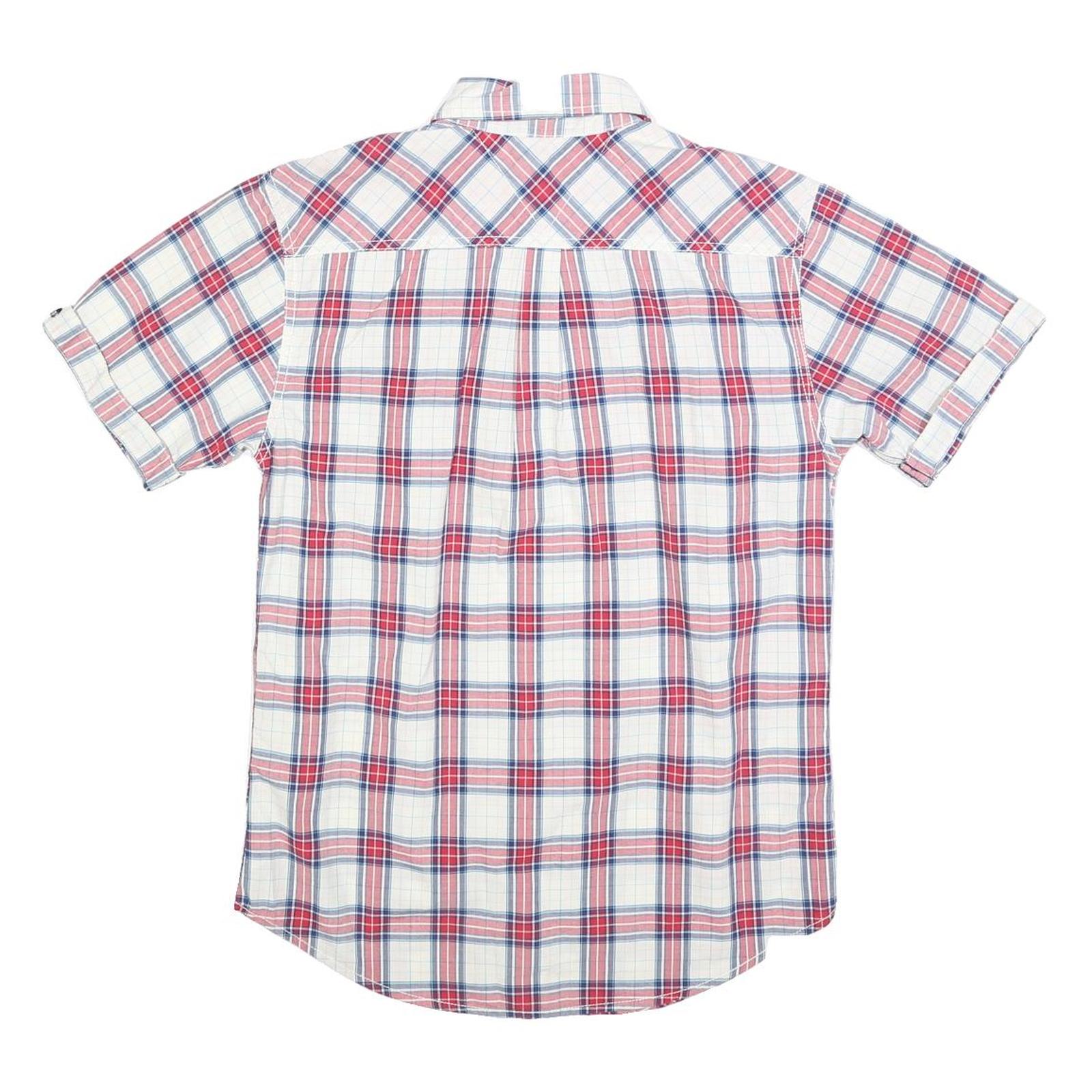 TOMMY HILFIGER Mens White & Red Checked Short Sleeve Shirt S Casual Cotton Blend