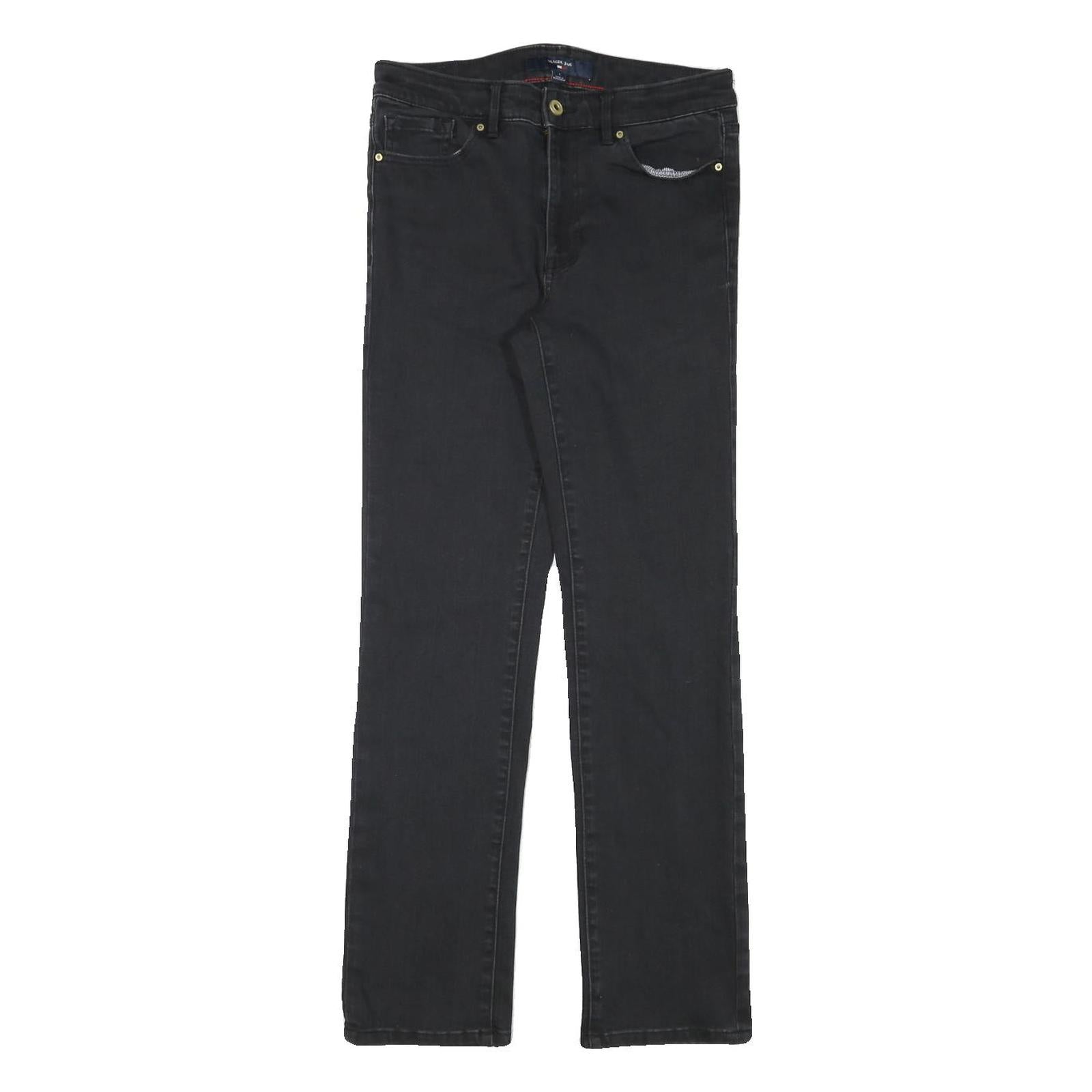 TOMMY HILFIGER Womens Black Regular Fit Straight Denim Jeans W28 L29 Stylish Zip