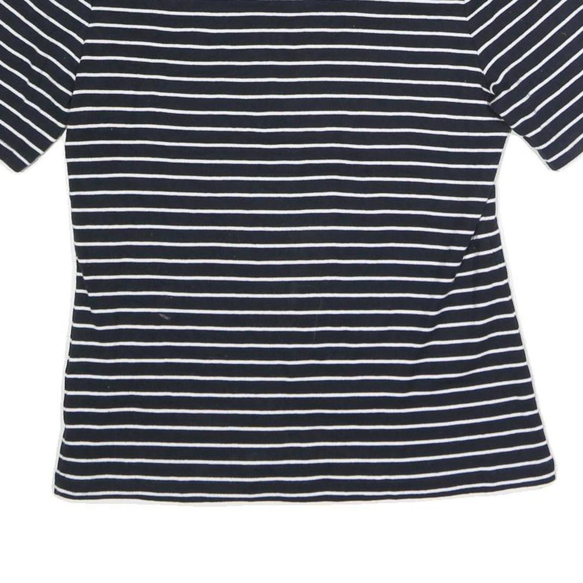 TOMMY HILFIGER Womens Blue & White Striped Top Short Sleeve V-Neck L Cotton