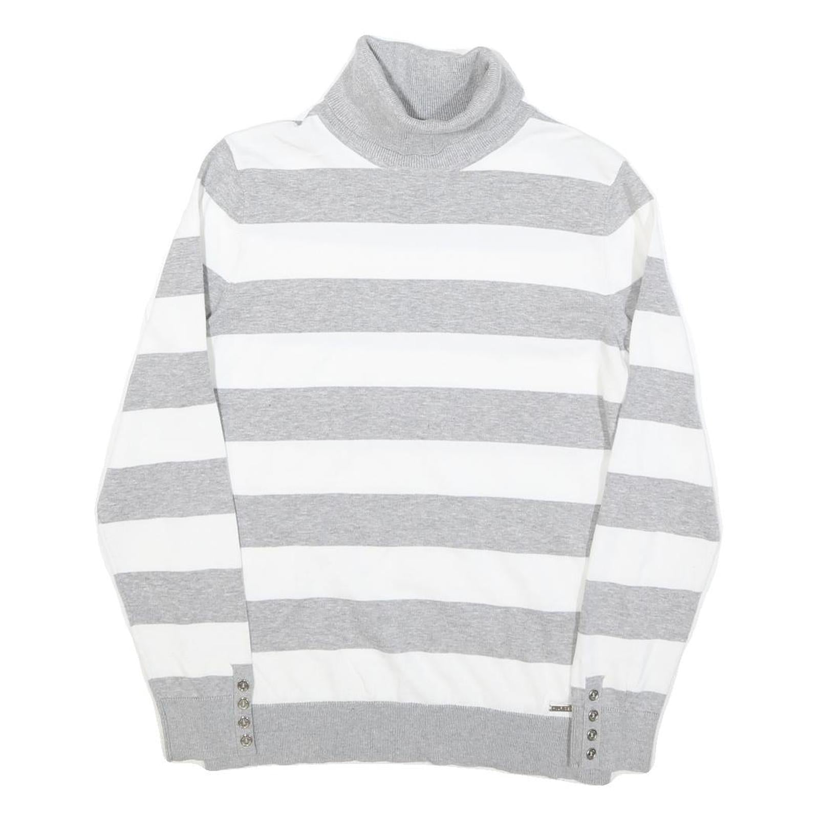 TOMMY HILFIGER Womens Grey & White Striped Plain Roll Neck Jumper M Cotton Blend
