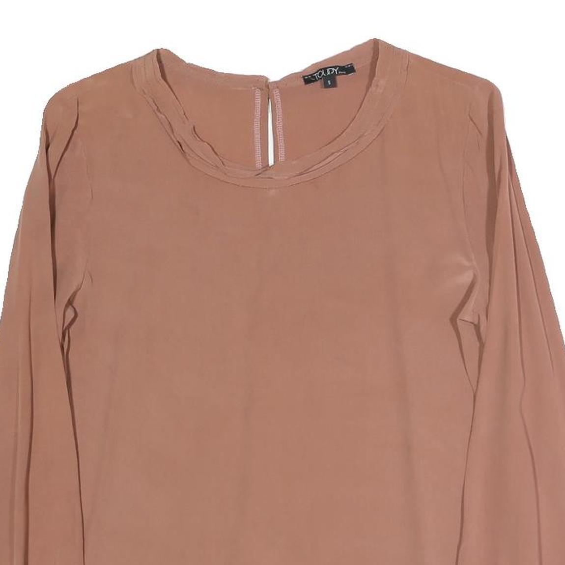TOUDY Womens Beige Long Sleeve Round Neck Plain Top S Lightweight Versatile