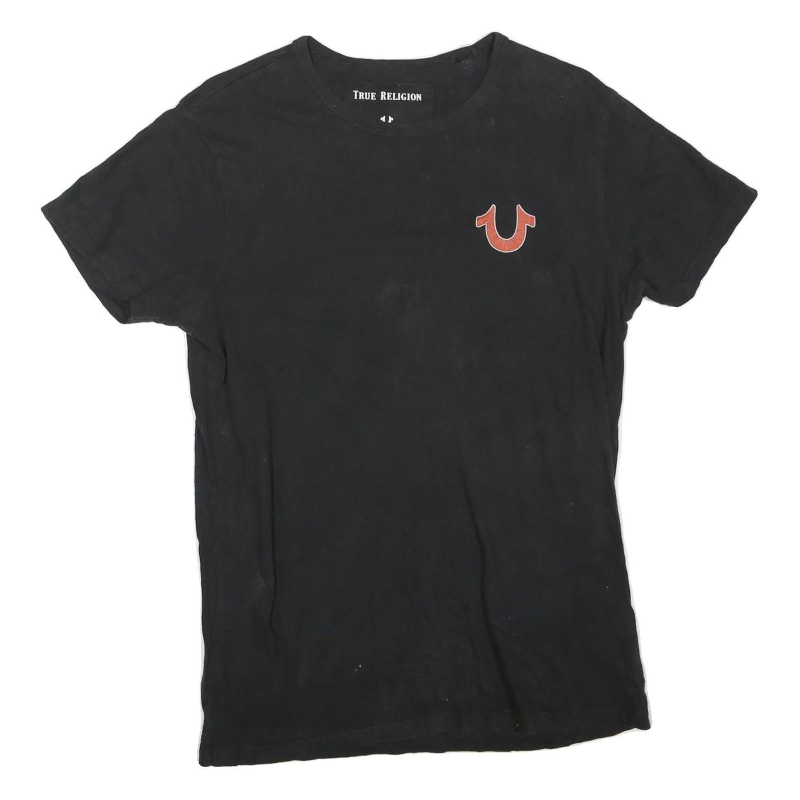 TRUE RELIGION Womens Black Graphic T-Shirt S Short Sleeve Crew Neck Brand Jeans