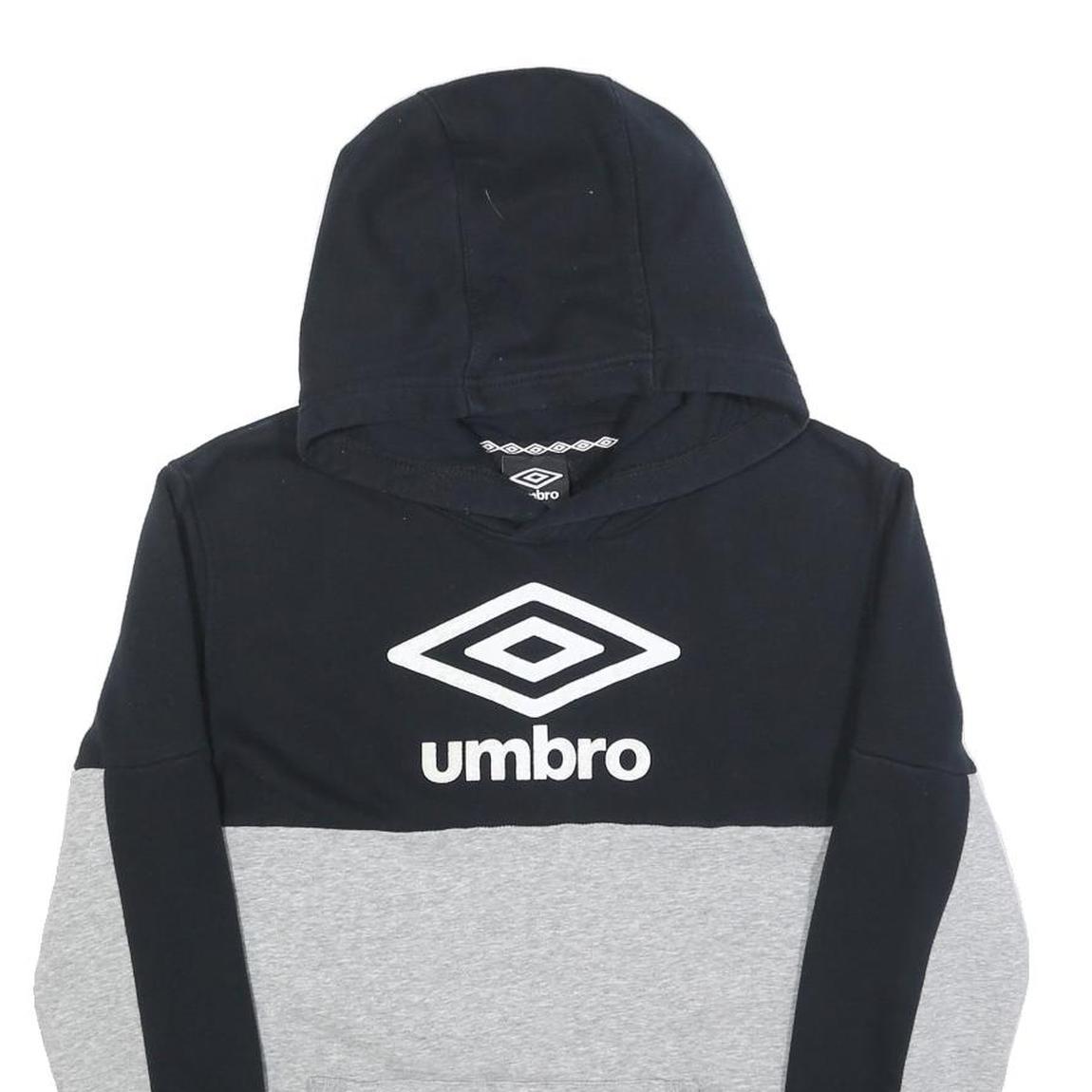 UMBRO Boys Black & Grey Cotton Blend Hoodie XL Colourblock Pullover Casual