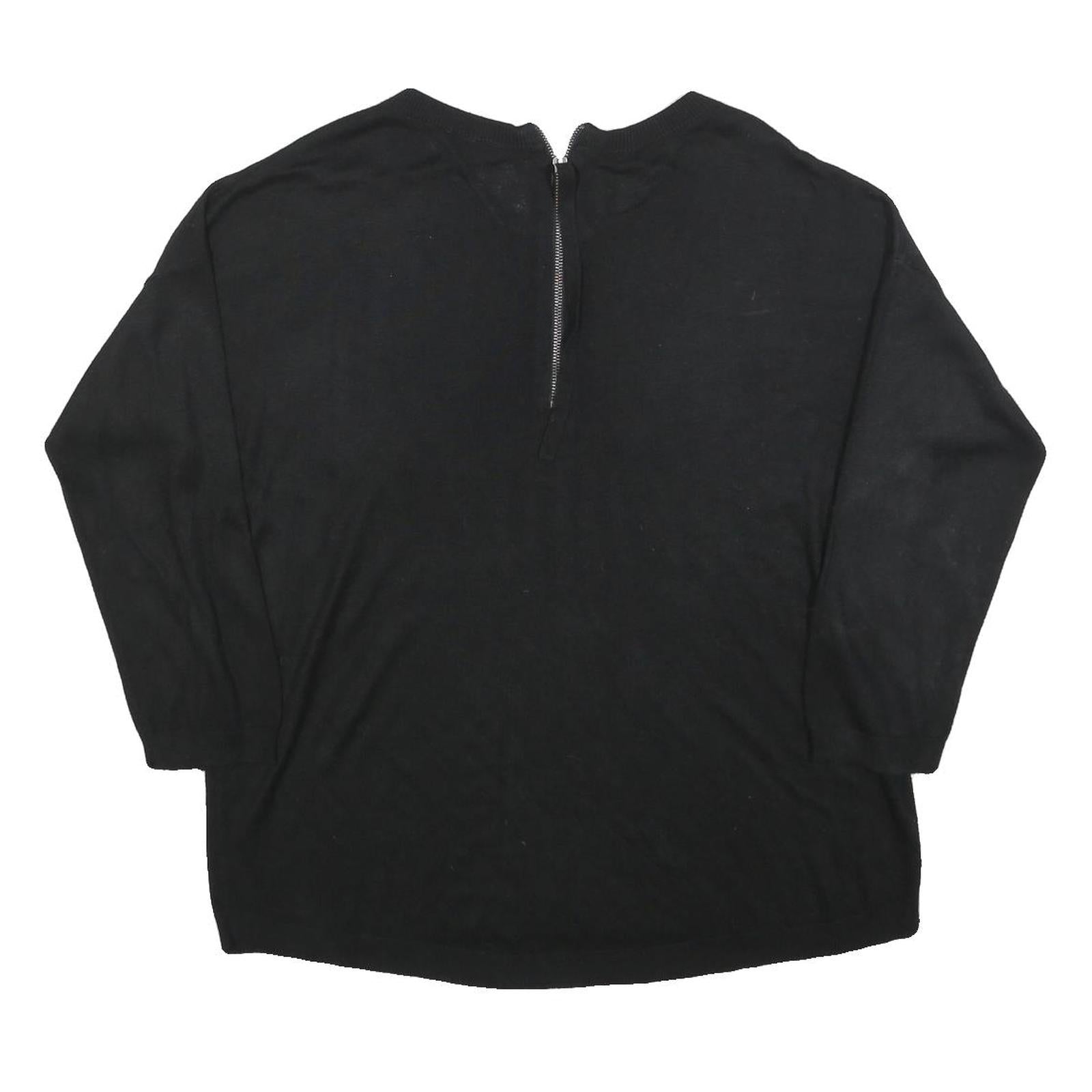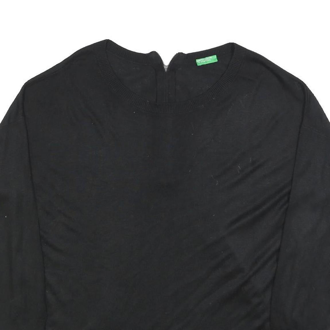 UNITED COLORS OF BENETTON Womens Black Plain Pullover Round Neck Basic Knit L