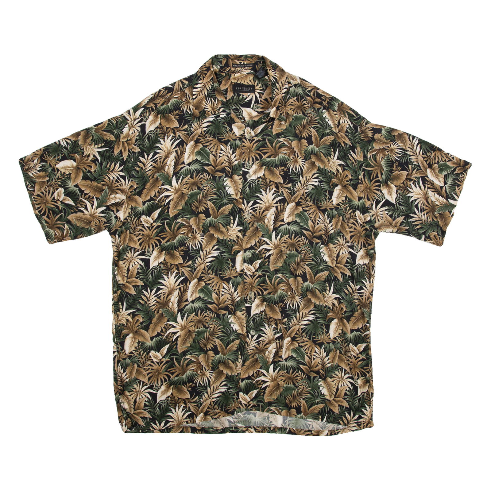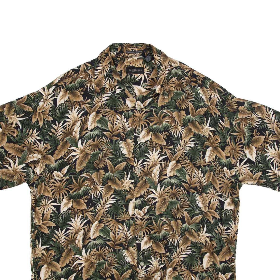 VAN HEUSEN Washable Rayon Mens Hawaiian Shirt Brown Floral L