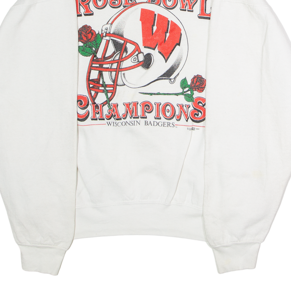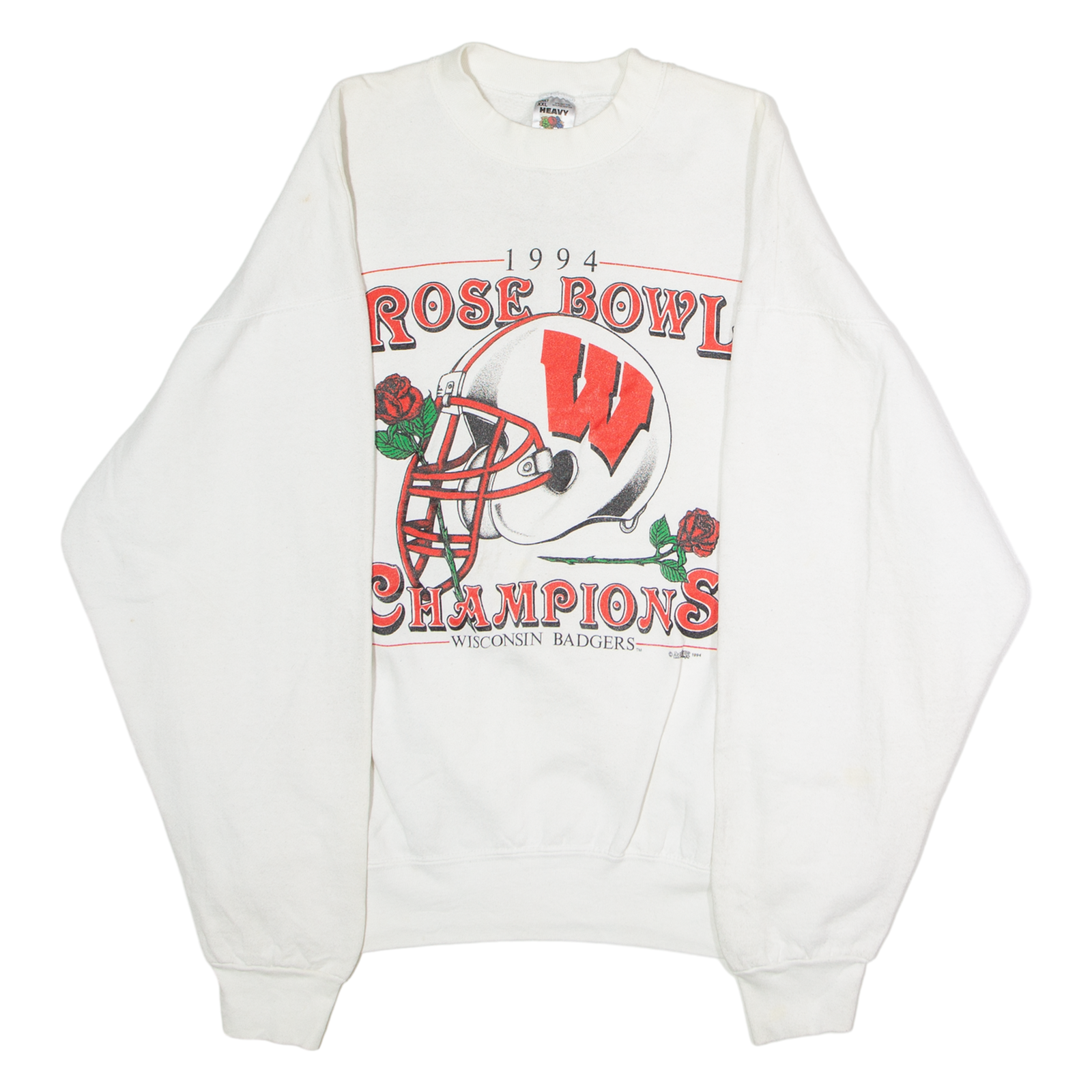 FRUIT OF THE LOOM Wisconsin Badgers 1994 Rose Bowl Champions Mens Sweatshirt White 90s USA XL