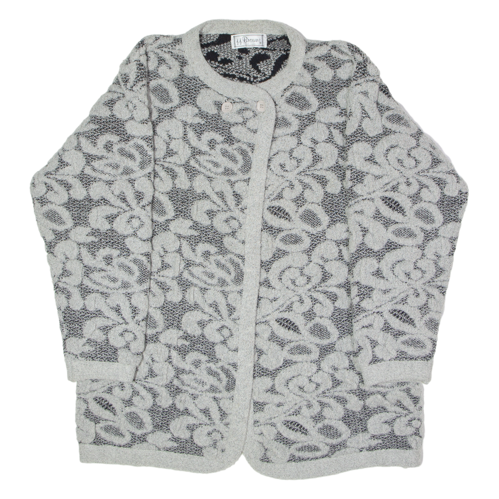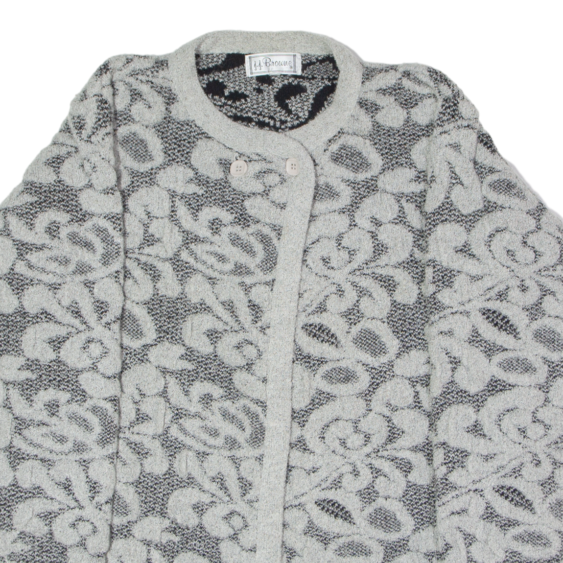 J.J. BROWNE Womens Jacket Grey Knit Wool 80s Floral UK 12