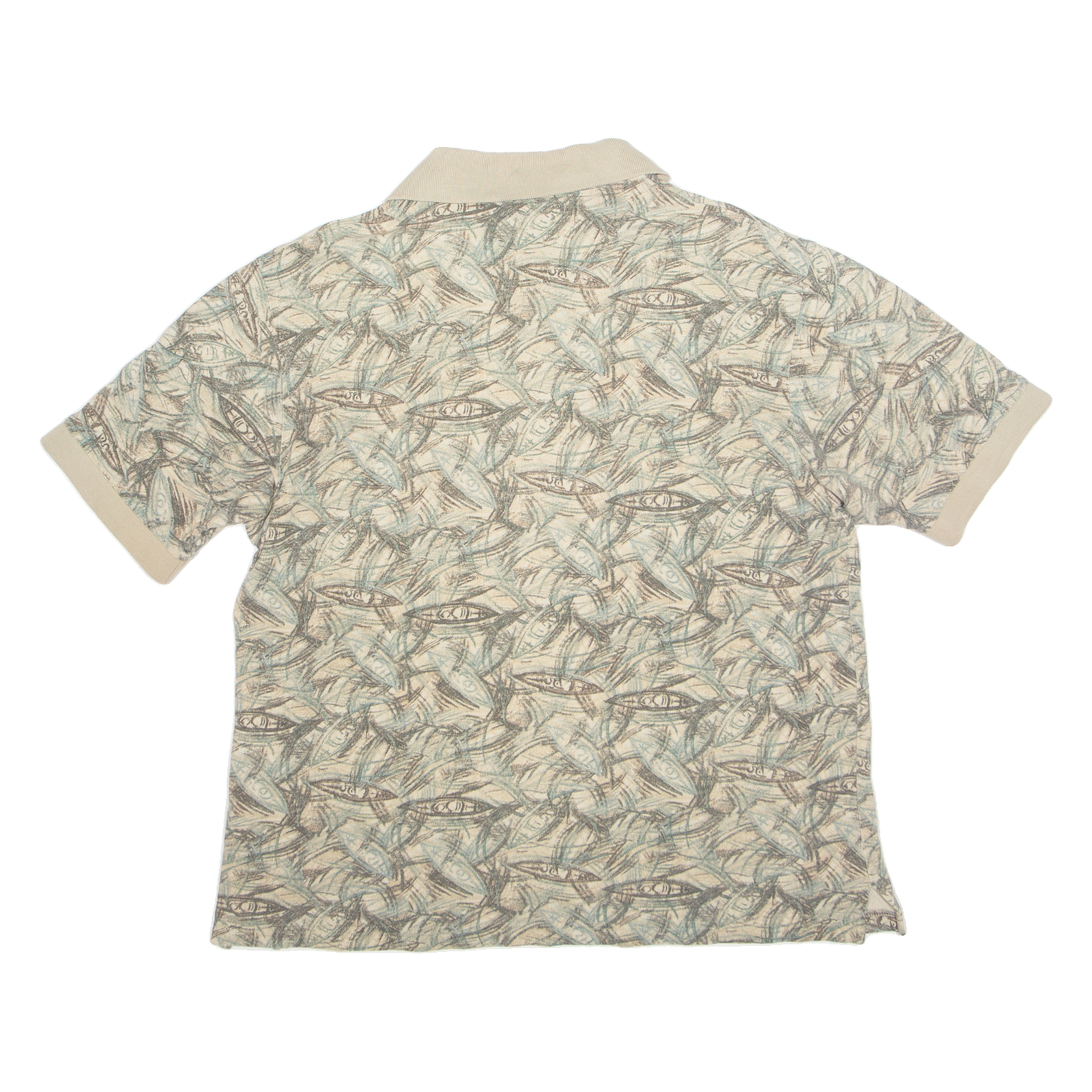 WOOLRICH Mens Polo Shirt Beige 90s Crazy Pattern L
