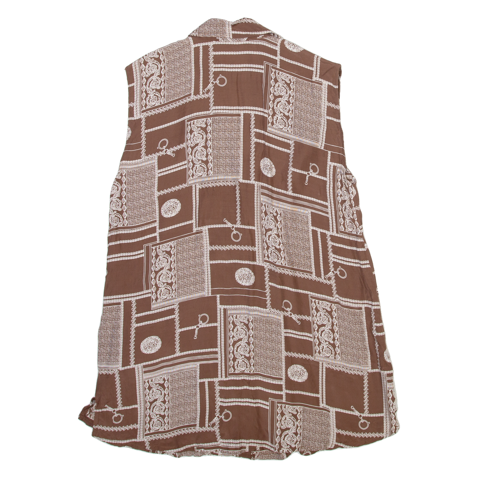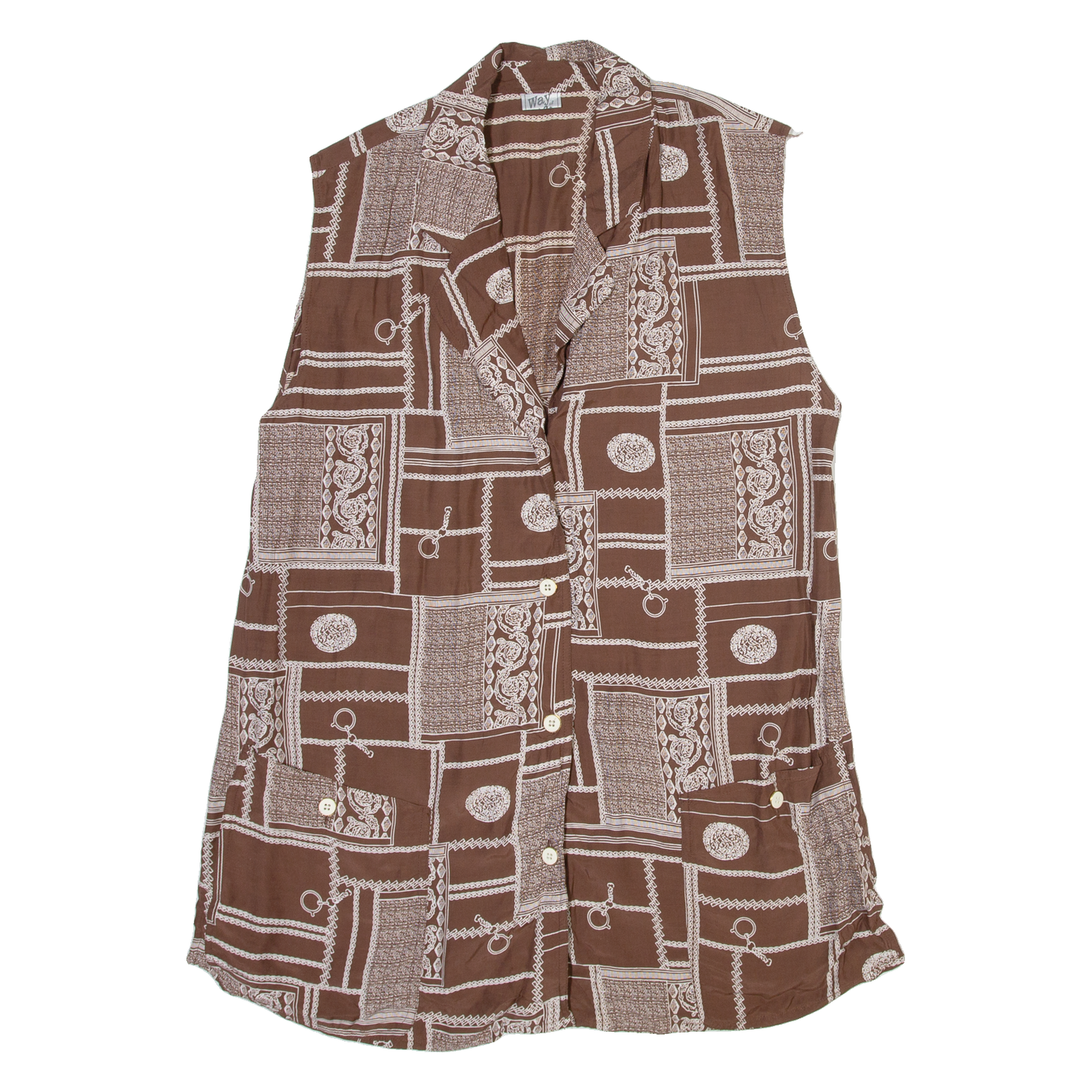 WAY Womens Printed Vest Brown V-Neck Sleeveless Crazy Pattern M