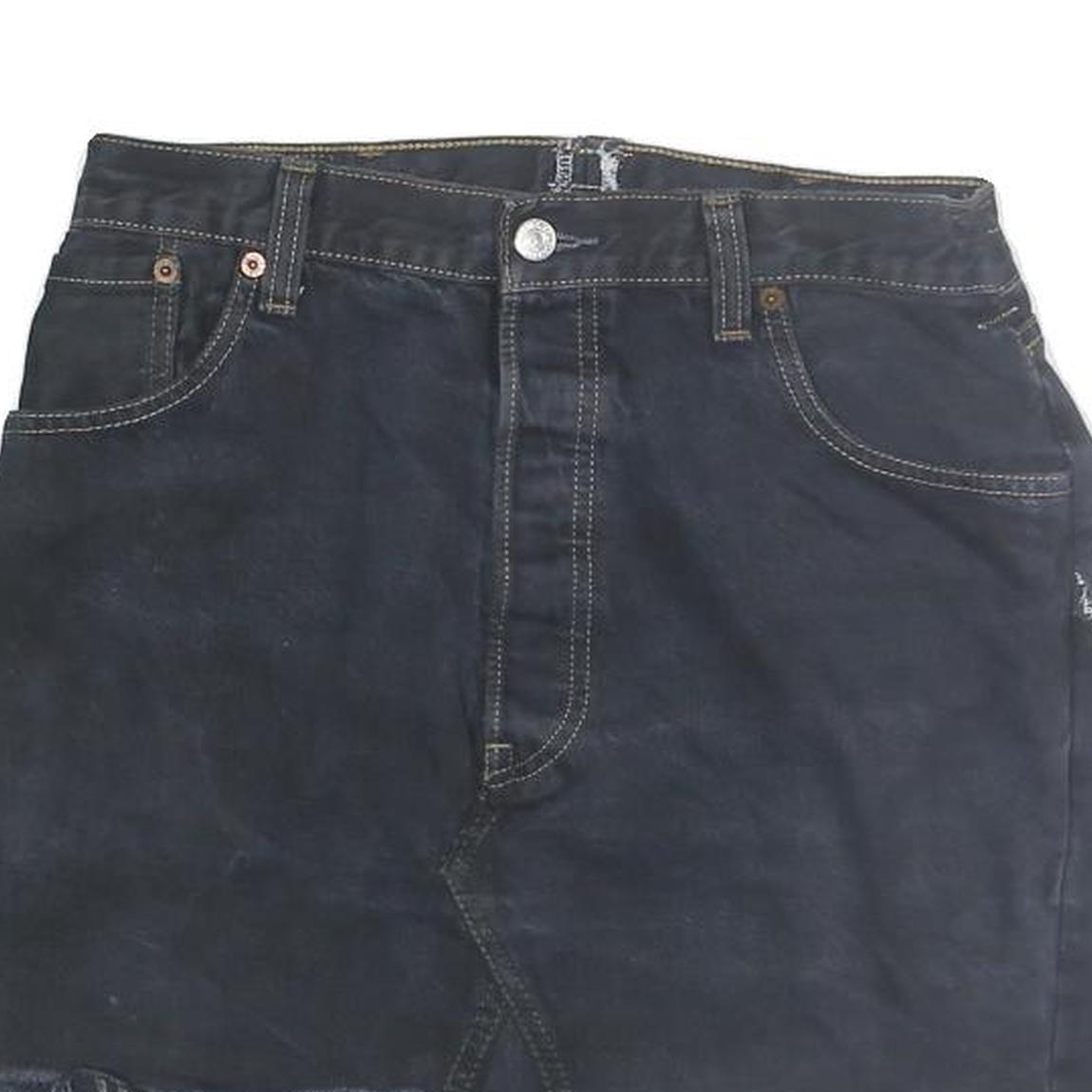 Womens Black Cotton Denim Mini Skirt Raw Hem Frayed Edge Size M Casual