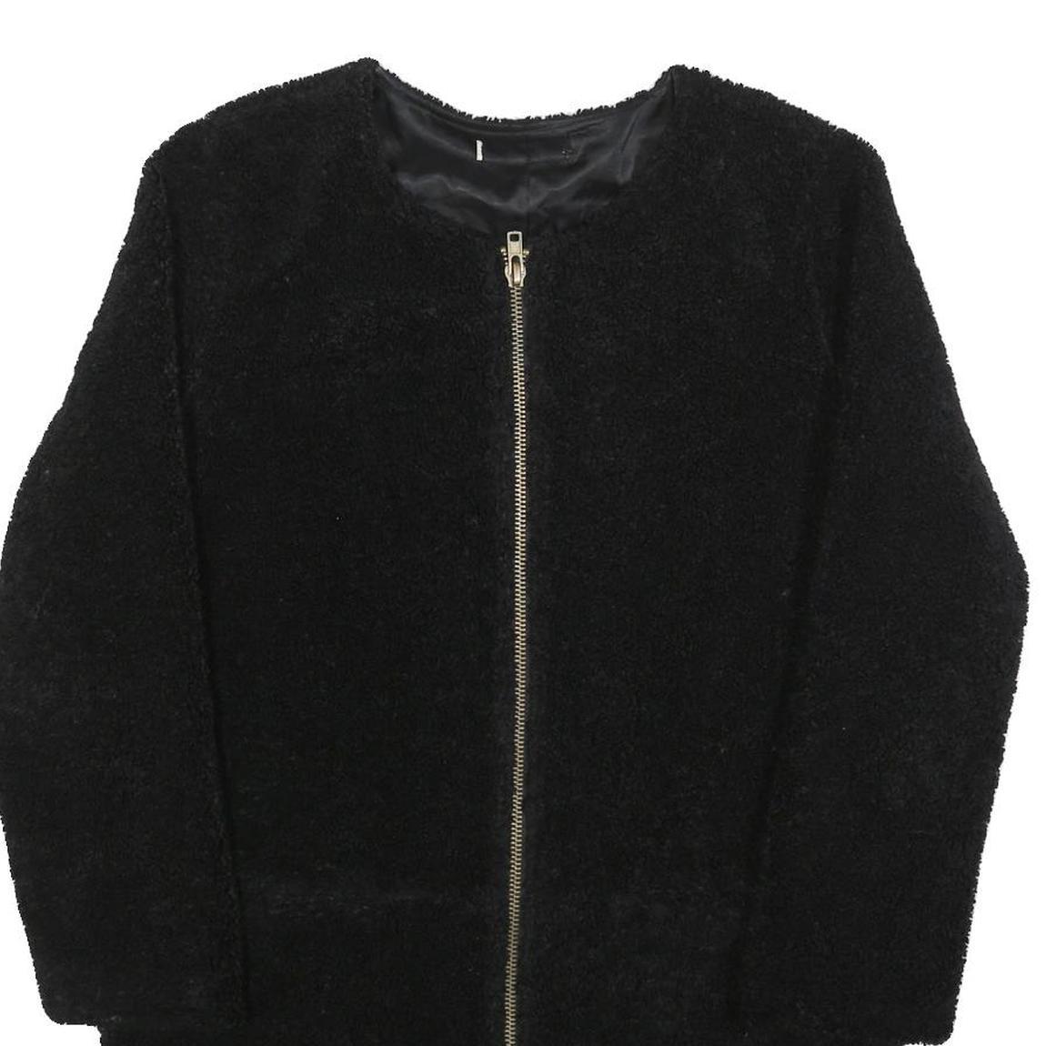 Womens Black Zip Front Jacket M Polyester Blend Plain Soft Warm Casual Outerwear