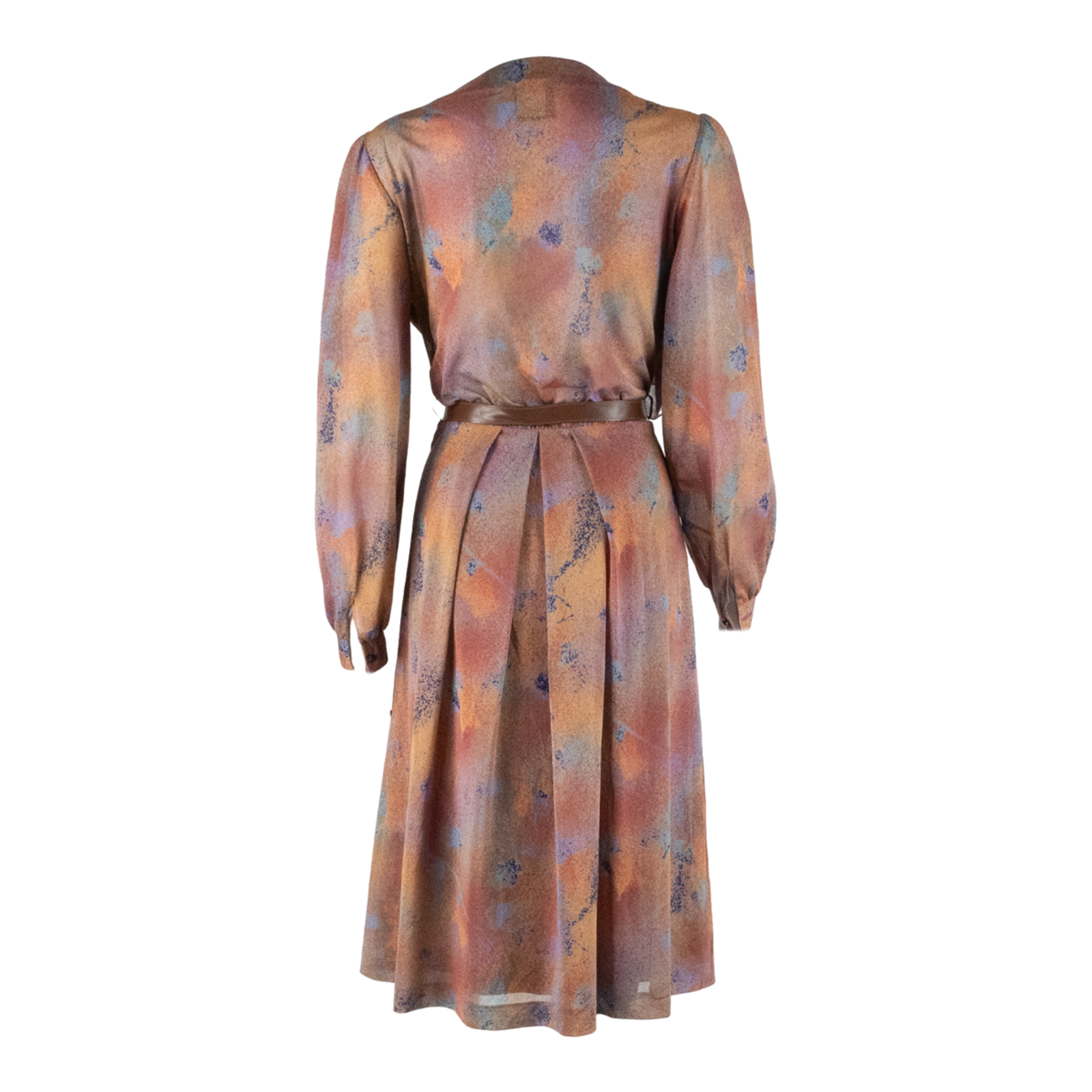 Womens Day Dress Brown Crazy Pattern Long Sleeve Knee Length S