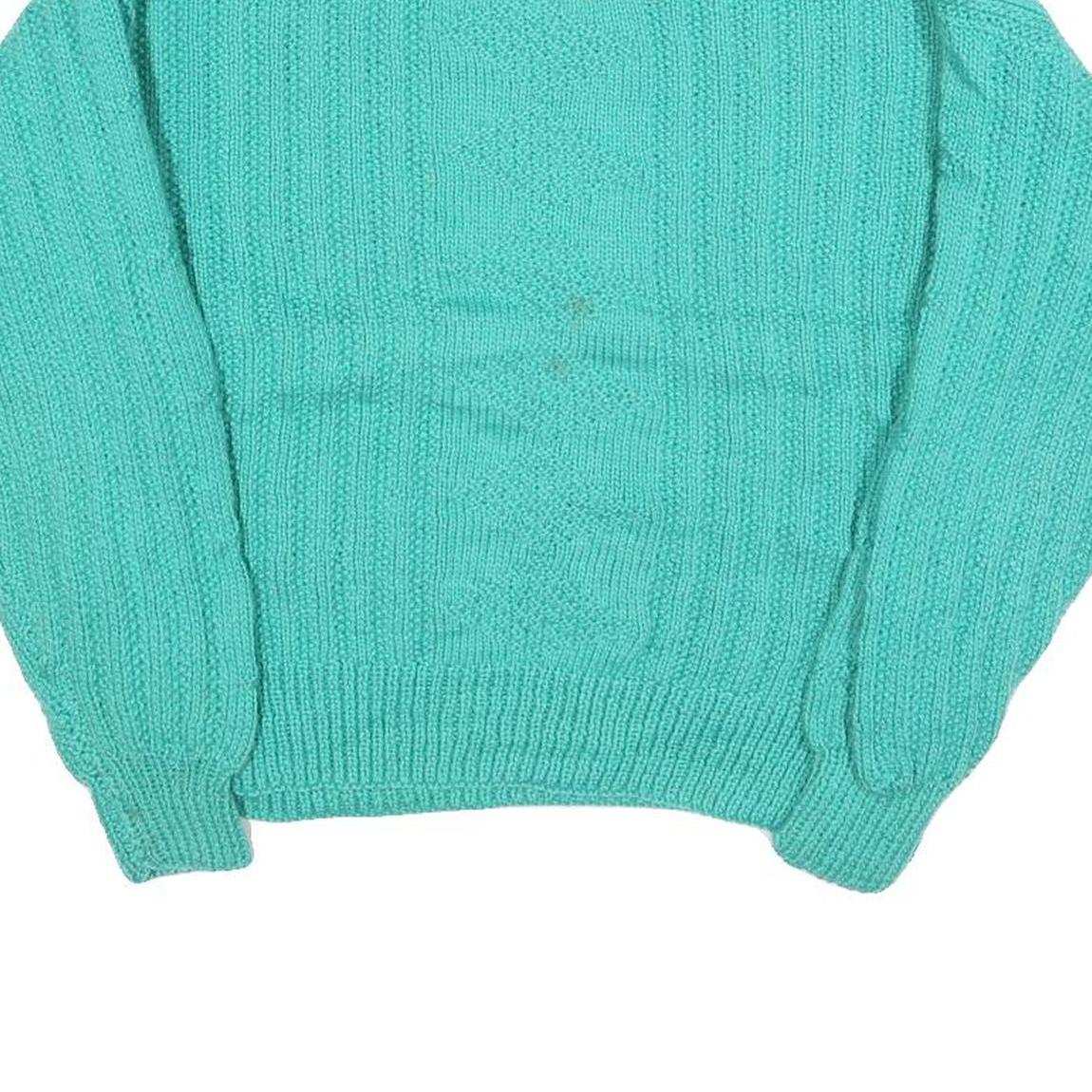 Womens Green Patterned Jumper Round Neck Chunky Knit M Cable Knit Regular Fit