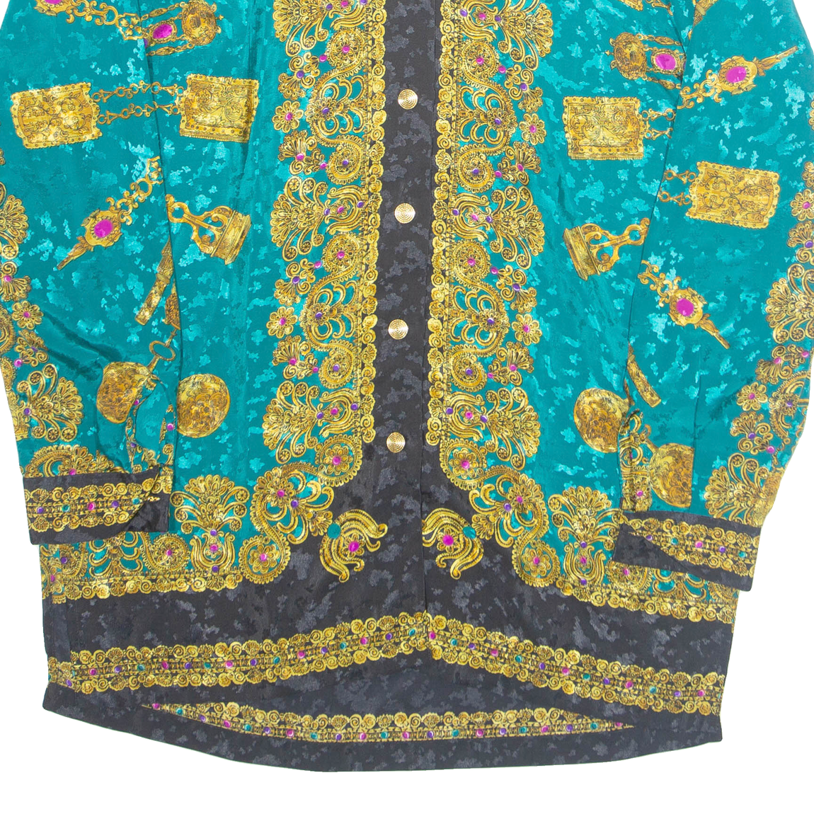 Womens Printed Shirt Blue Collared Long Sleeve Crazy Pattern L