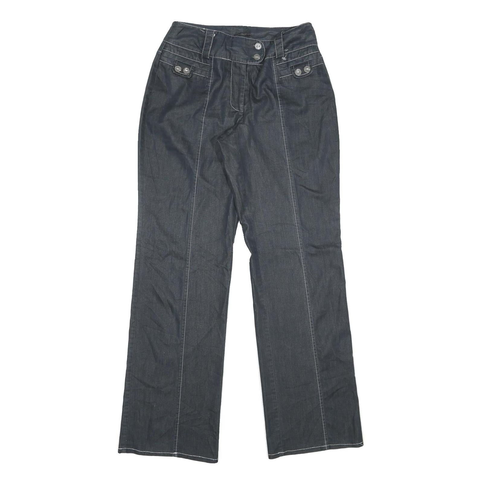 Womens Regular Fit Black Cotton Blend Zip Trousers W26 L31 Stylish