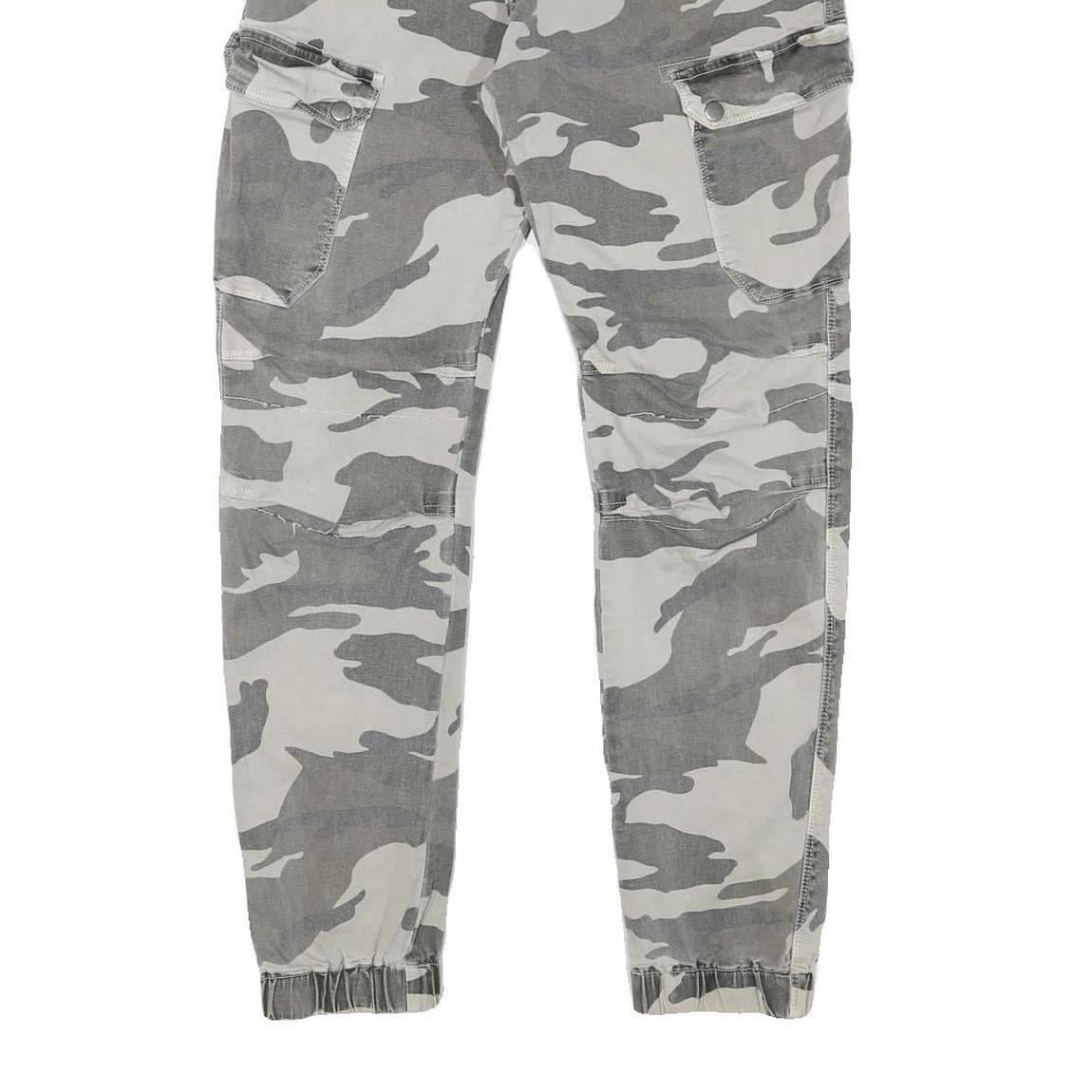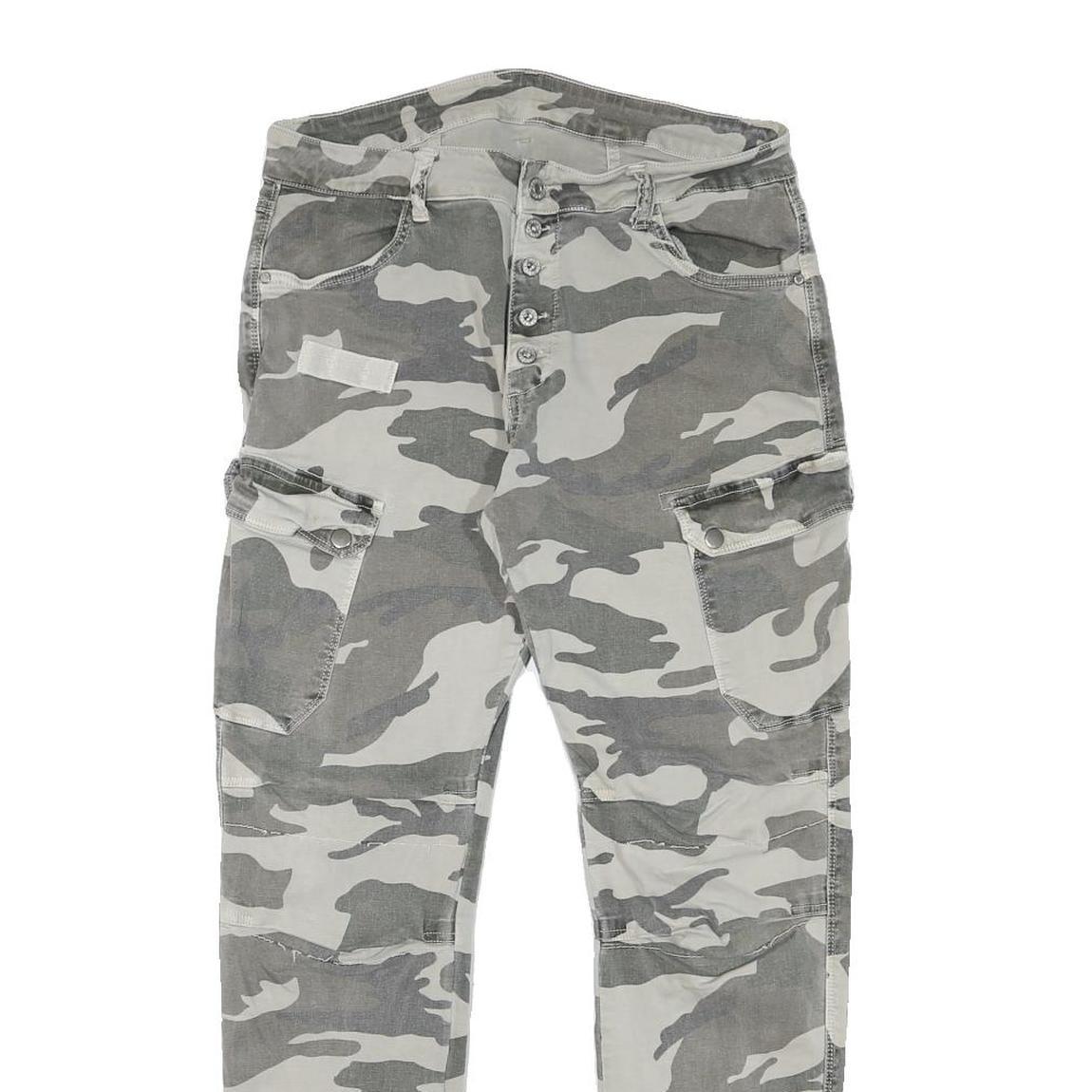 Womens Relaxed Grey & White Camo Button Trousers W30 L28 Casual Cargo Style