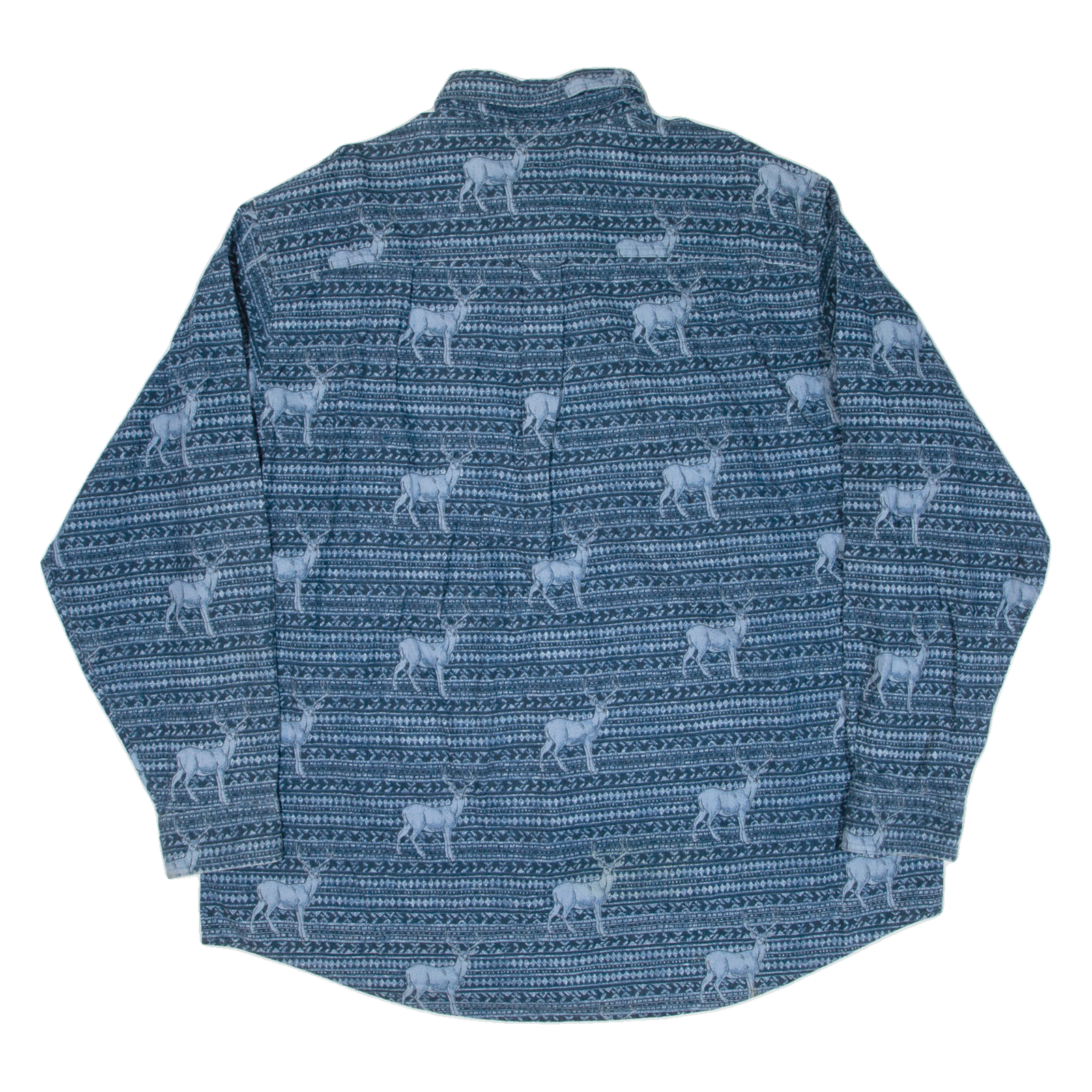 WOOLRICH Deer Mens Flannel Shirt Blue Crazy Pattern Long Sleeve 2XL