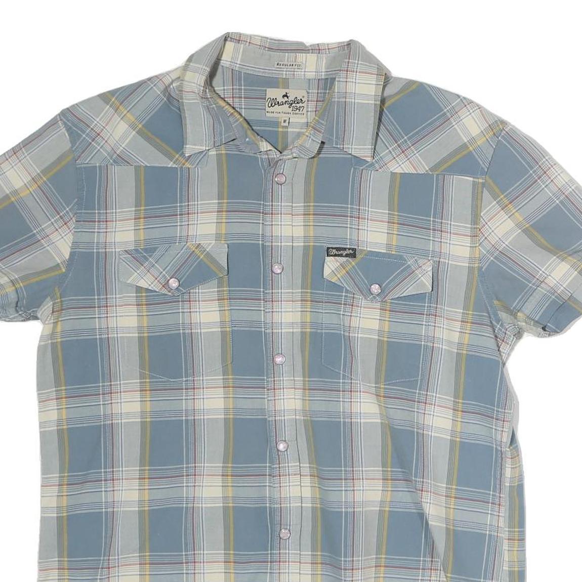 WRANGLER Mens Blue & Cream Check Shirt M Cotton Casual Western Short Sleeve