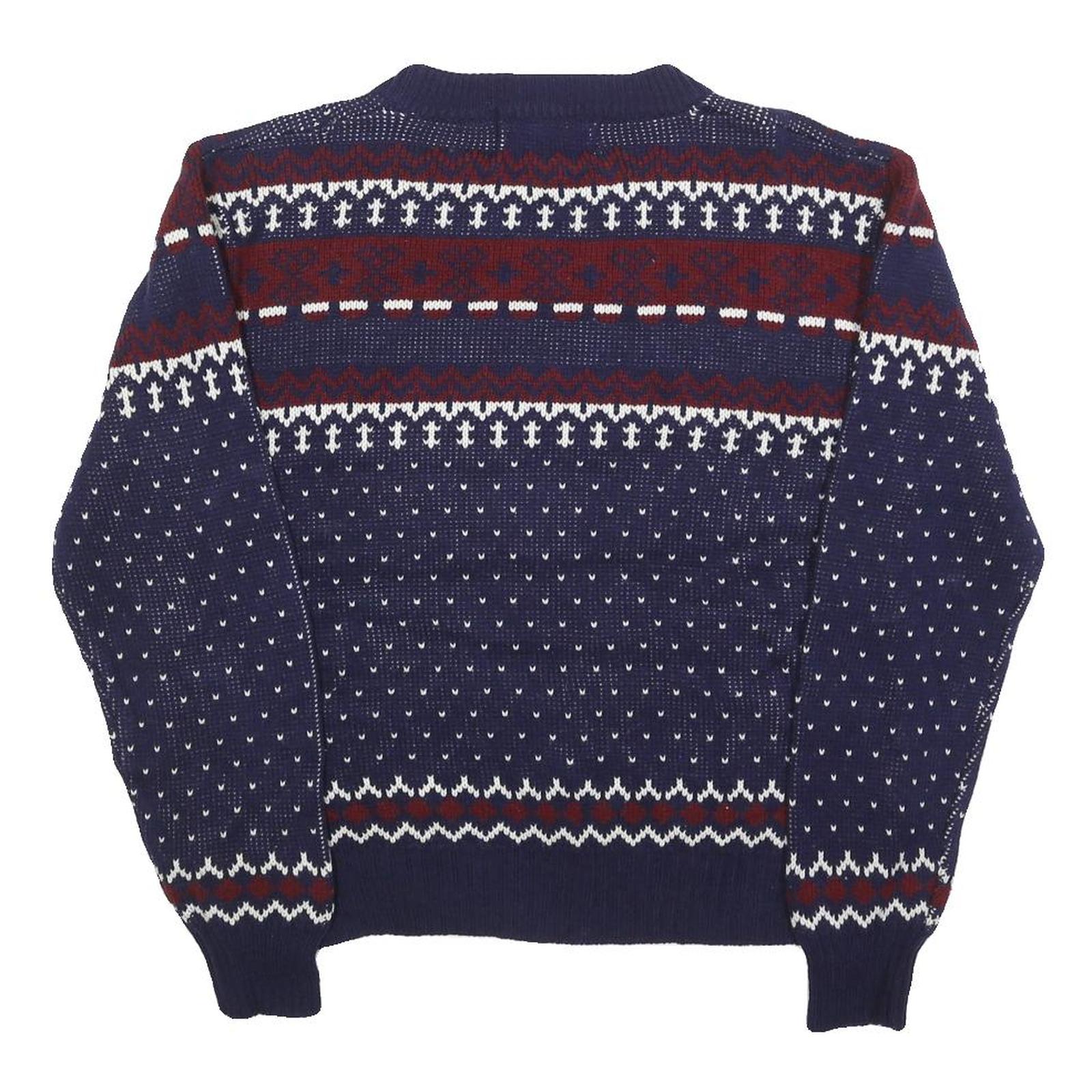 YOUNGBLOODS Womens Navy & Burgundy Patterned Jumper Crew Neck Basic Knit M